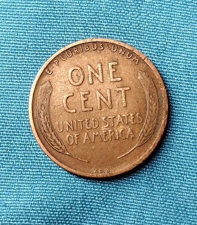 1909 wheat penny with VDB on the bottom of the "tail" side. When it was struck it was hit unlevel and you can clearly see that one side of the penny is thinner then the other. Very hard to come by and would make a great addition to any coin collection.