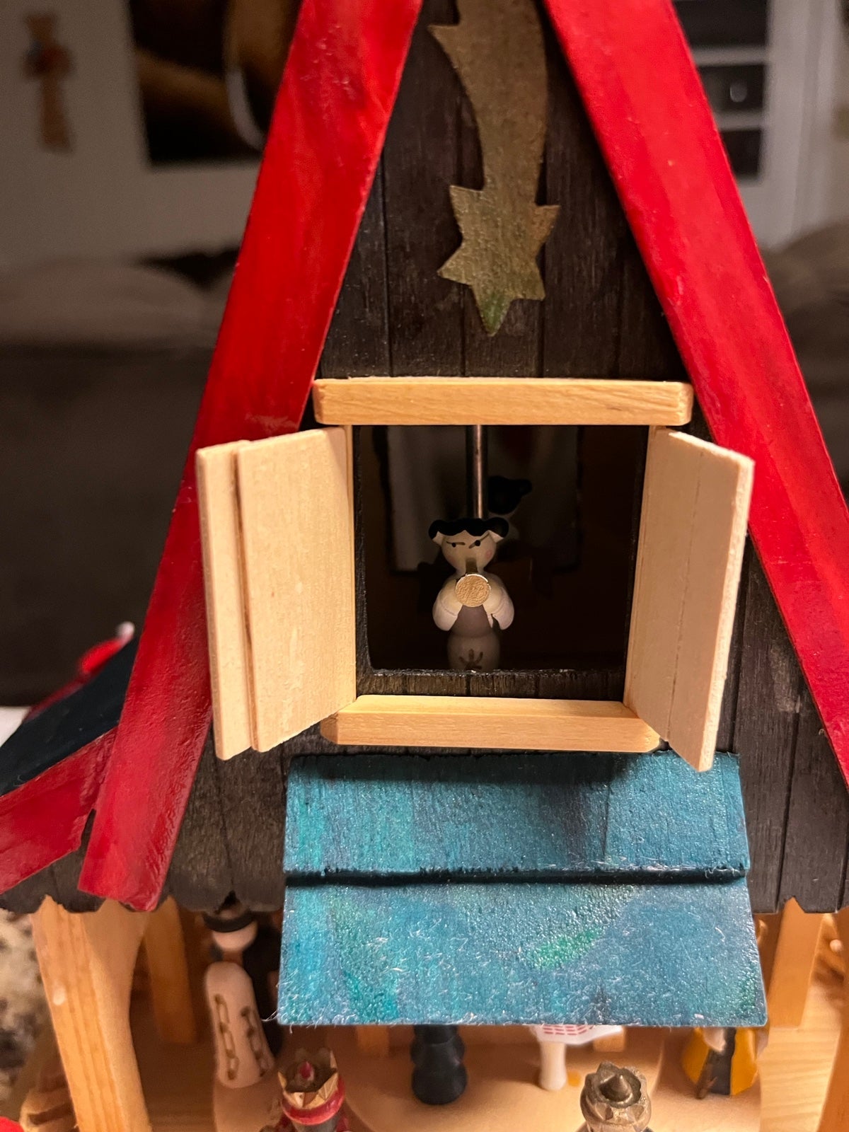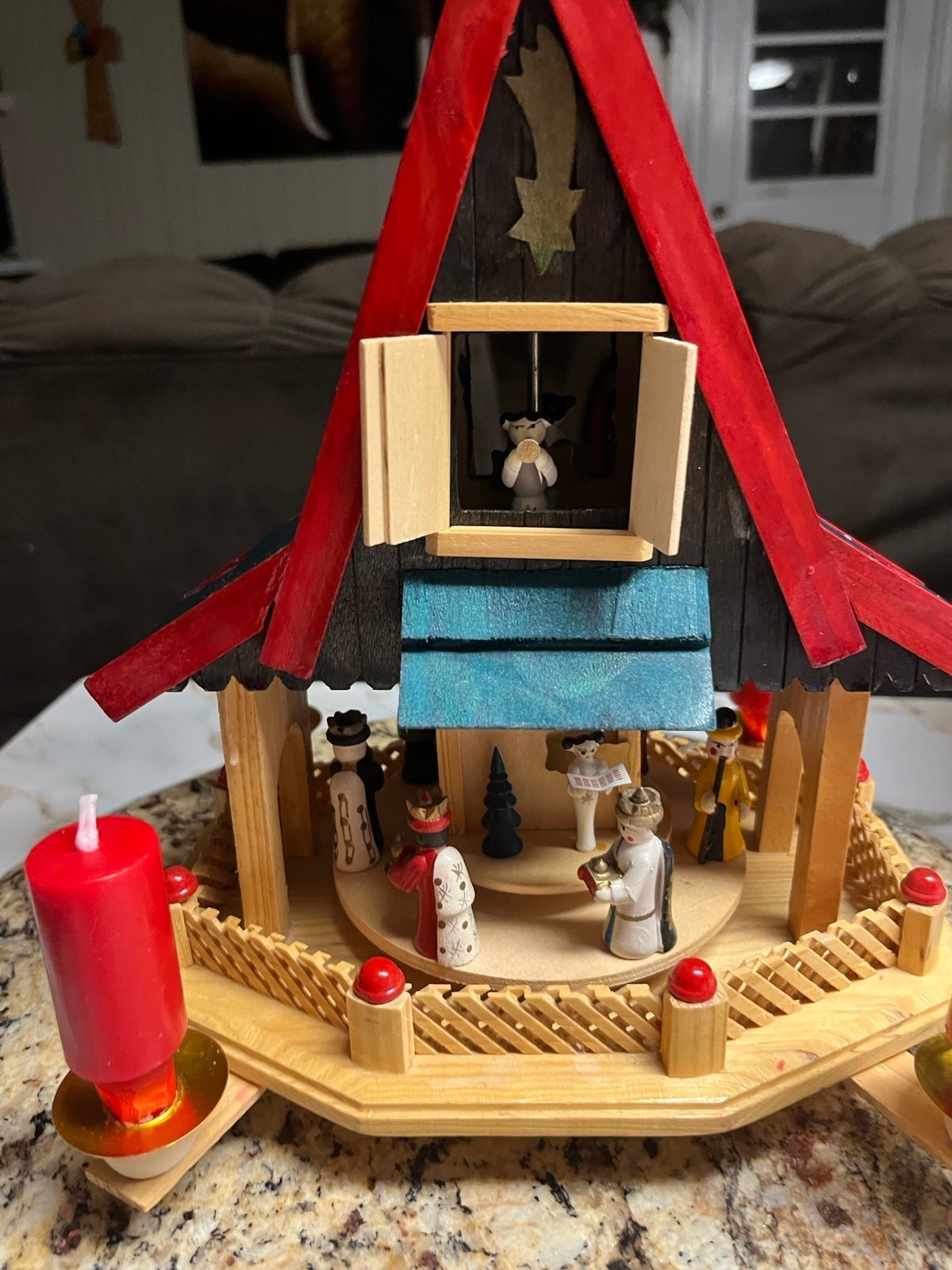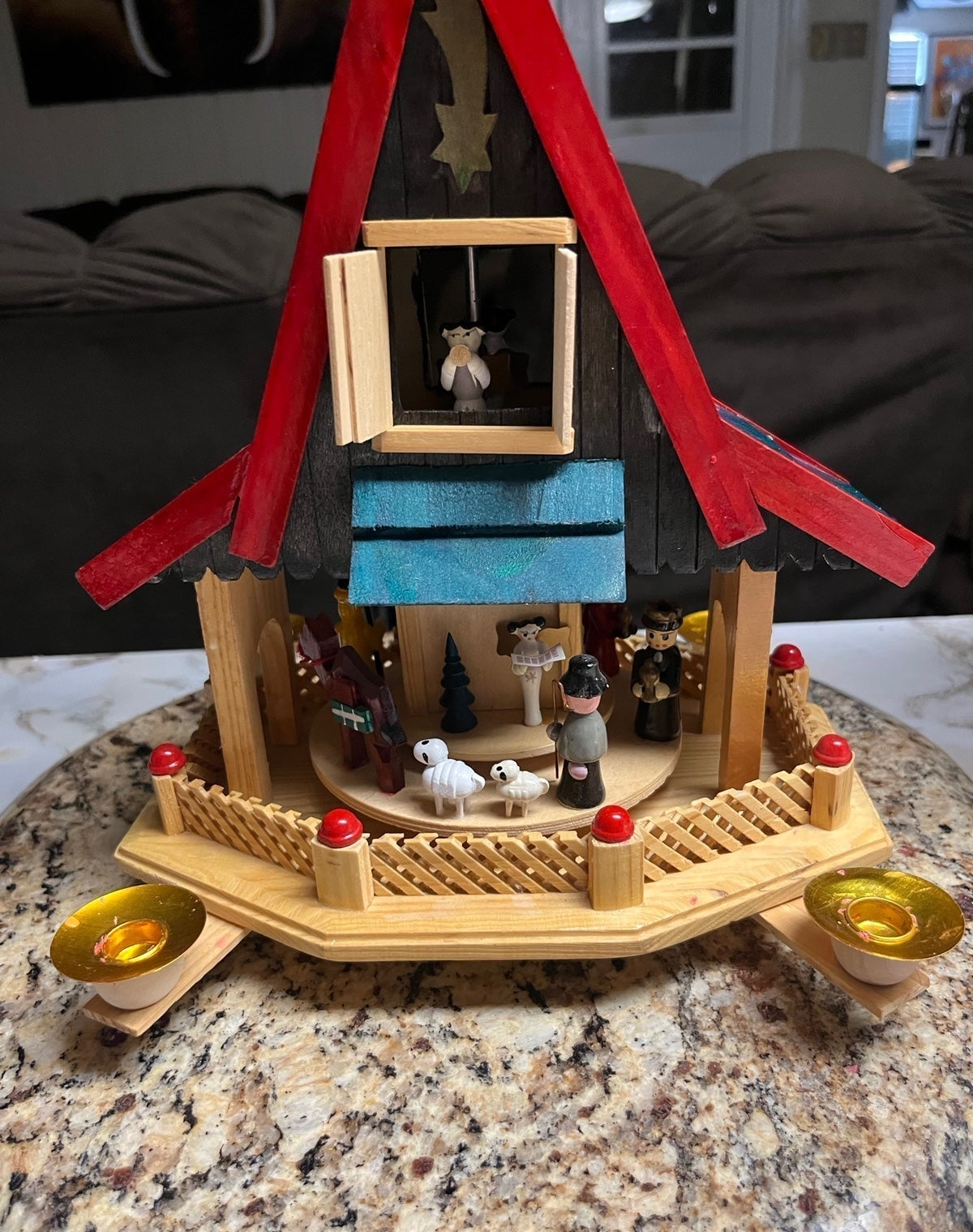 2.) Middle (Not revolving): Joseph, Mary & baby Jesus one 1 side & the opposite side has a angel holding music