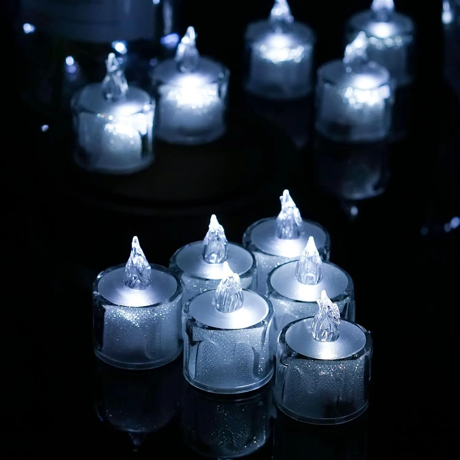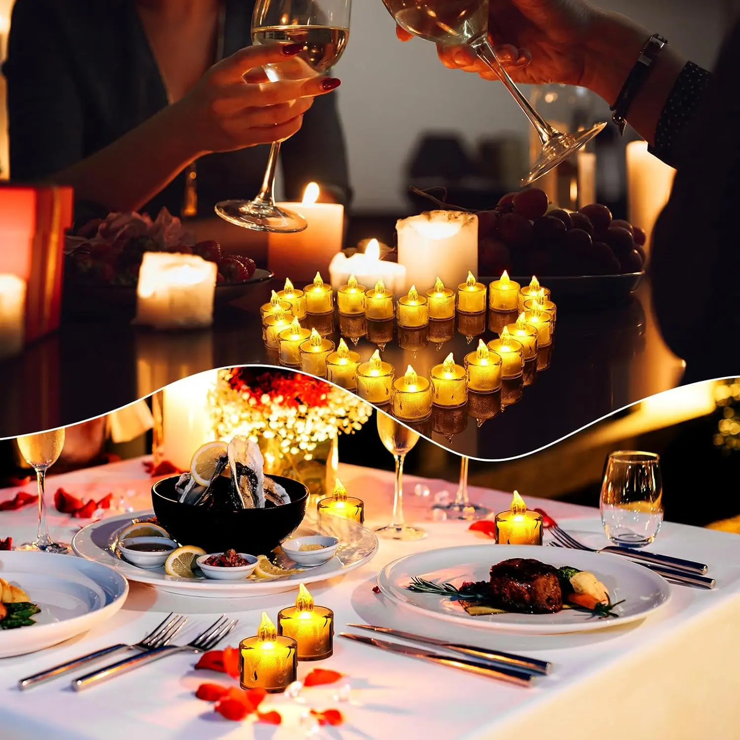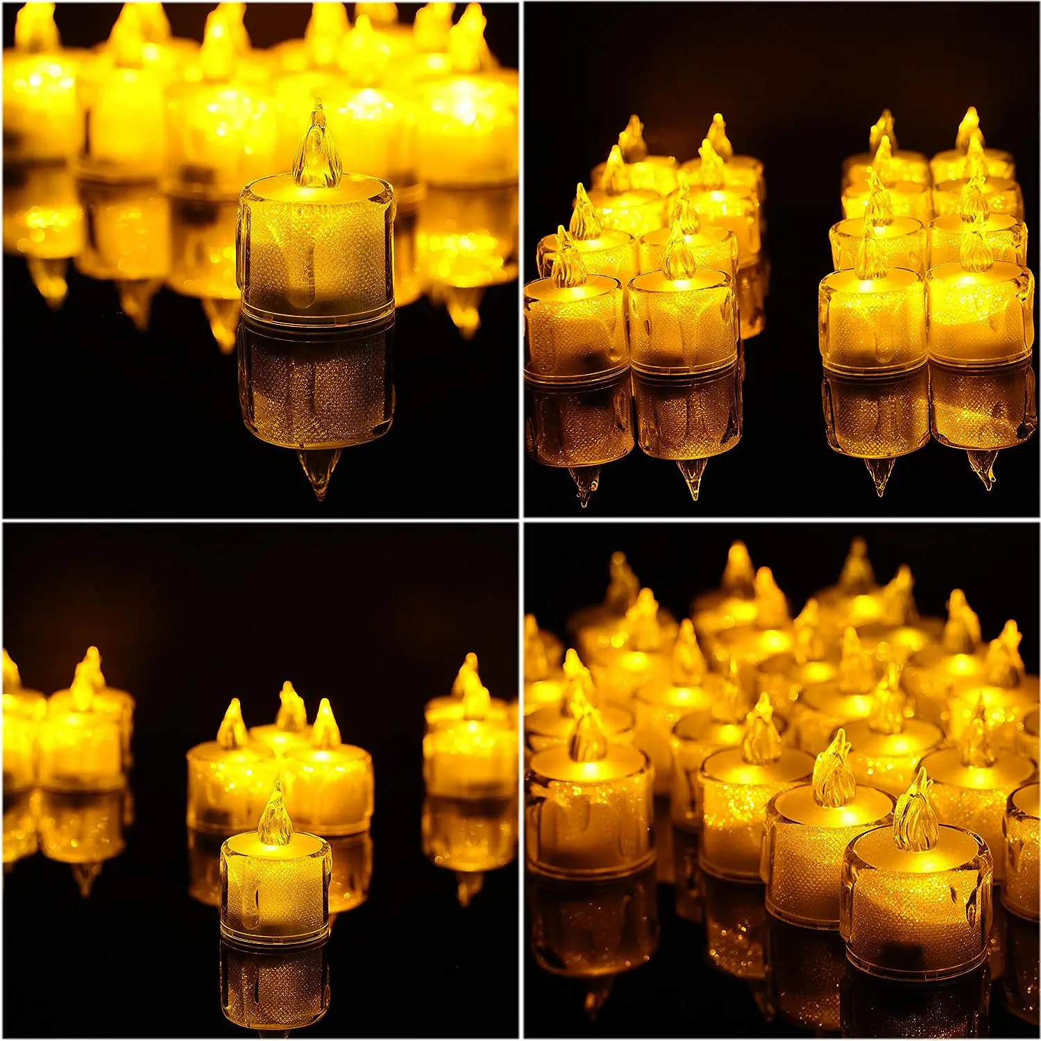FUN AND ROMANTIC: The flashing bulb flameless LED Tea Lights are ideal for decorations, It can be used as mood lights night lights with votive holders or other holders like glass cups. You can put the battery tealight on table or other places in restaurants, home and garden wedding, party, festival decorations.