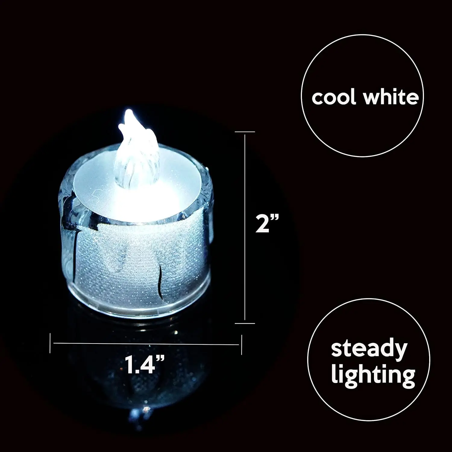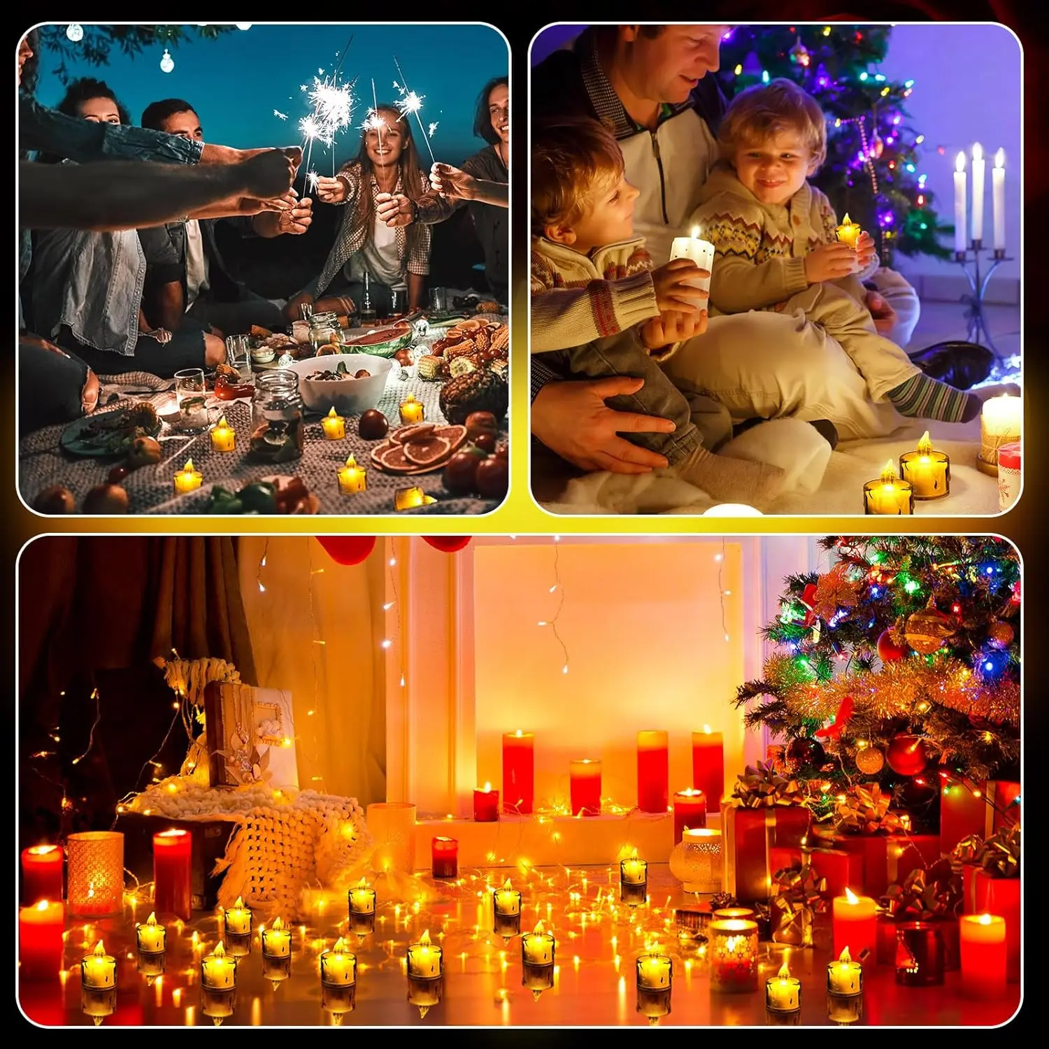 SAFE For KIDS, PETS, SENIORS: These LED tea lights can be used without having to worry of flame, absolutely no fire hazards or burning risks, safe for families with pet(s) or young child(ren).