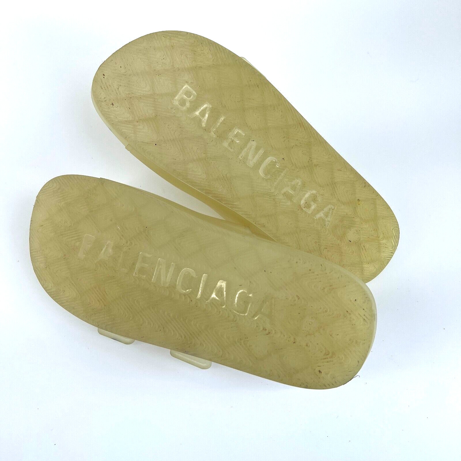Balenciaga Mallorca Slides Sz 38 US 8 Lime Jelly Buckle Strap Designer Sandals 656937