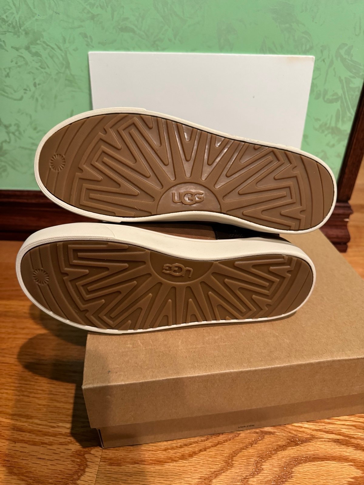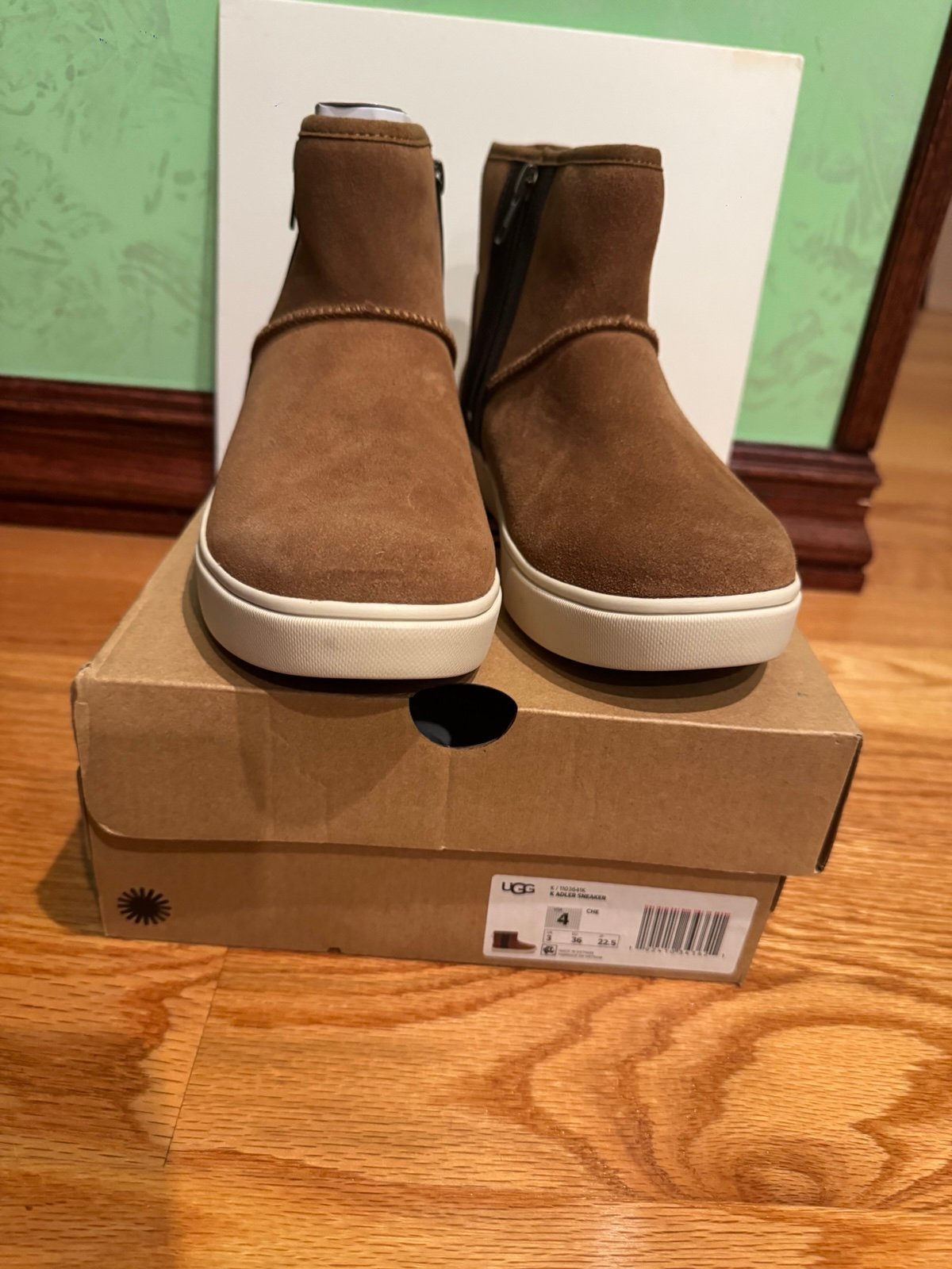 Part sneaker and part boot, this sporty suede shoe is easy to move in, and fun to wear. A molded EVA sole and lightweight, flexible outsole provide much-needed cushioning, support, and durability to non-stop bundles of energy. Suede upper Lateral zipper, Medial zipper Antimicrobial lining Foam footbed Molded rubber outsole 4" shaft height Woven heel label with UGG® logo, UGG® logo woven label on sock liner