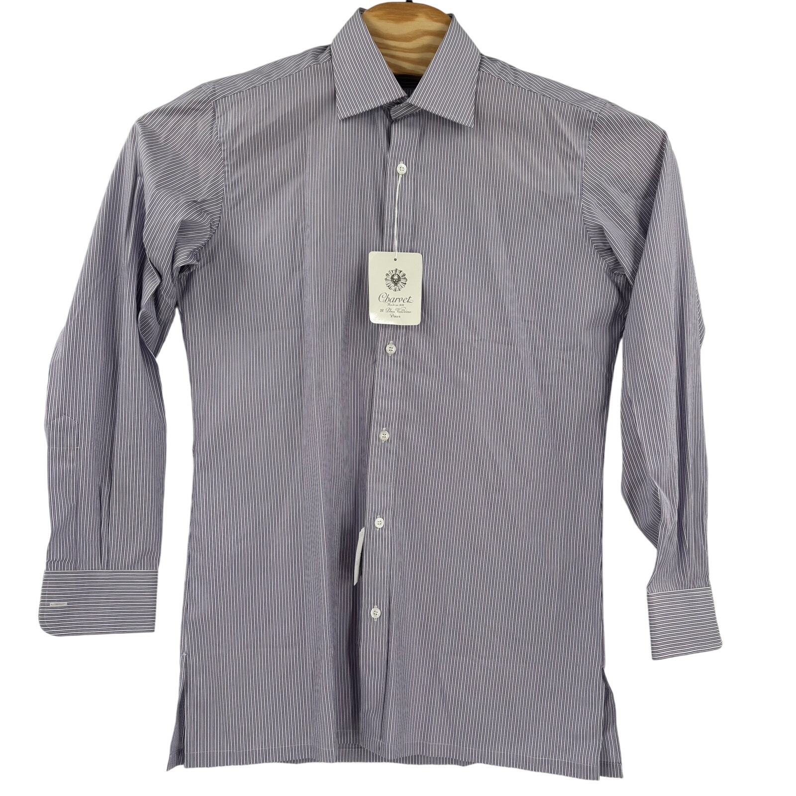 This is a new with tags Charvet Paris Mens 15 1/2-39 Purple Striped Long Sleeve Button Up Shirt. MSRP$ 585