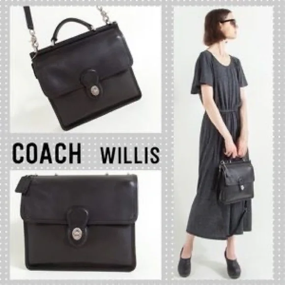 This classic Coach purse is made of leather and features:Adjustable and removable crossbody strapTop handleTop flapRare Sliver hardware Top hard structured bar keeps bags shapeCoach hang tagTurn lock front closureFront and back full length open pocketsMain compartment has inside slippocketSuede leather lined