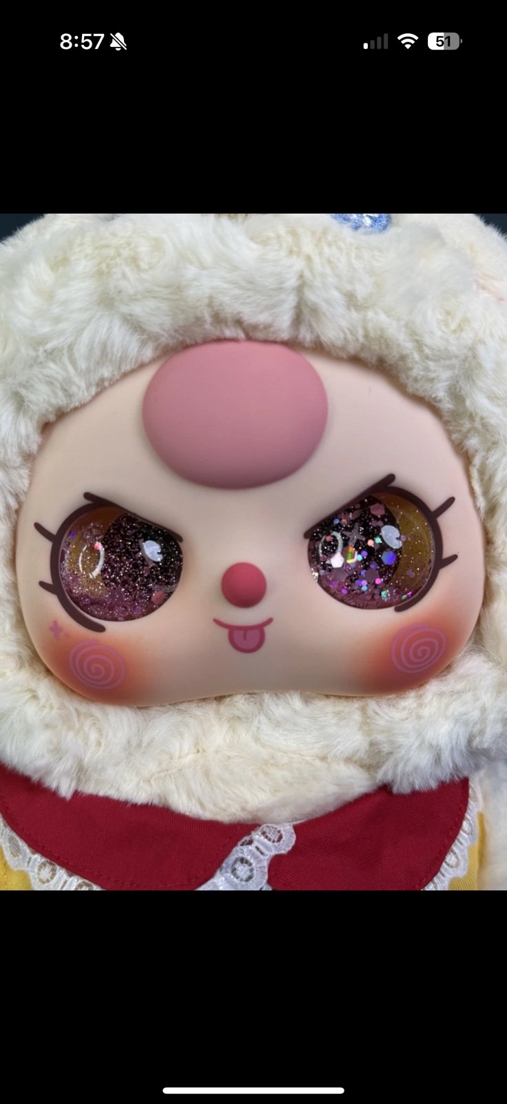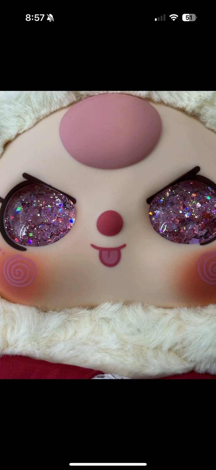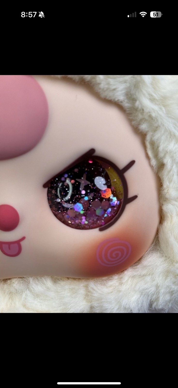 This is a CRYING PINK GLITTER EYES CONFIRMED Baby Three 400% V2 Little Bunny figure.