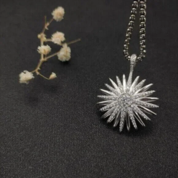 "David Yurman Sunflower, Starry Sky, Diamond Necklace DYXL-006Length: 50+5 cmWeight: 25 gramsMetal: 925 sterling silverWidth: 2.7mm box chain (medium)Closure: lobster clasp.From a smoke-free, pet-free homeThe delivery time is 2-3 working days.*Colors may vary with environmental lighting and camera filters.⚠️***ITEM INSPECTION, PACKING, AND SHIPPING RECORDED TO PREVENT SCAMMERS.***⚠️"
