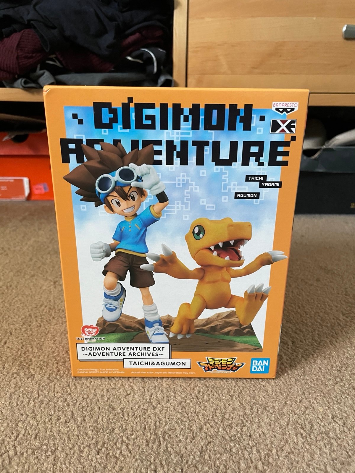 Brand new in the box, has never been opened or displayed. Digimon statue featuring Taichi & Agumon. PLEASE VIEW ALL PHOTOS CAREFULLY, SMALL CREASING/DENT FLAW ON BOX PACKAGING AS SHOWN. Will be shipped with care and speed! :)
