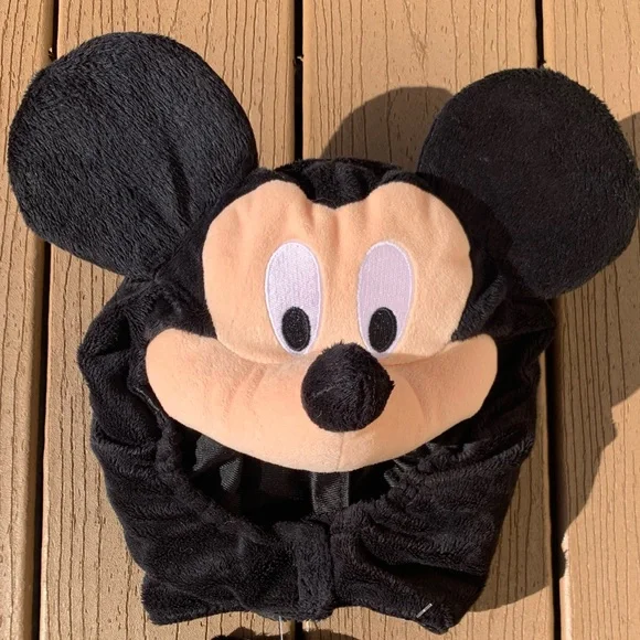 GENTLY LOVED ADORABLE DISNEY BABY MICKEY MOUSE DISNEY STORE EXCLUSIVE ONESIE COSTUME JACKET INFANT SIZE 12-18 MONTHS BUT A VERY GENEROUS FIT.IN EXCELLENT CONDITION, THIS MICKEY MOUSE ZIP FRONT VEST STYLE ONESIE IS STINKING CUTE!FEATURES DETACHABLE MICKEY HEAD HOOD COMPLETE WITH FACE AND EARS.CHIN STRAP HAS VELCRO FASTENER TO SECURE ON BABYS HEAD AND COVER HEAD, NECK EARS FROM THE ELEMENTS.FULL ZIPPER ON FRONT FOR EASY ON/OFF.ZIPPER IS IN GOOD WORKING ORDER.PADDED FLAP BETWEEN LEGS SECURES GARMENT TO BODY TO PREVENT RIDING UP.EXTRA PADDING MAKES FOR A FULL SHAPE.BOTTOM RED PANT IS SUPER SOFT CORDUROY.SLEEVELESS VEST STYLE MAKES IT WEARABLE IN ALL KINDS OF WEATHER.PUT A LONG-SLEEVED TEE UNDER IT AND WEAR IT IN SPRING OR FALL.PUT A TURTLENECK UNDER IT AND WEAR IT IN WINTER.CHILD COULD EVEN WEAR IT OVER A JACKET OR COAT FOR TONS OF FUN PLAY.PAIR WITH SOME LEGGINGS AND VIOLA, INSTANT COSTUME!PERFECT FOR A HALLOWEEN COSTUME AND IF IT GETS A LITTLE CHILLY, JUST SLIP A SWEATER UNDER IT!MACHINE WASH MAKES KEEPING CLEAN A BREEZE.PLEASE TAKE A CLOSE LOOK AT THE PICTURES SINCE THEY TELL THE STORY.COMES FROM A COMPLETELY SMOKE FREE HOME.