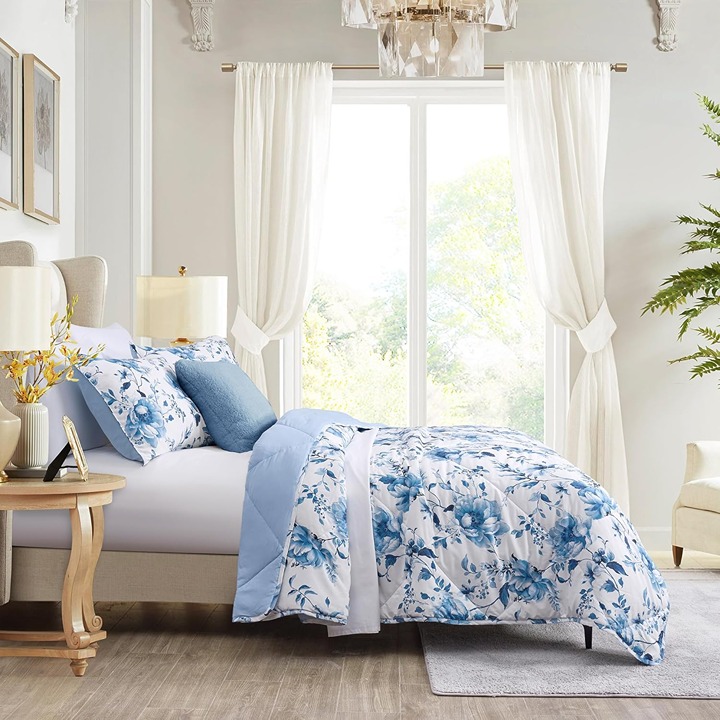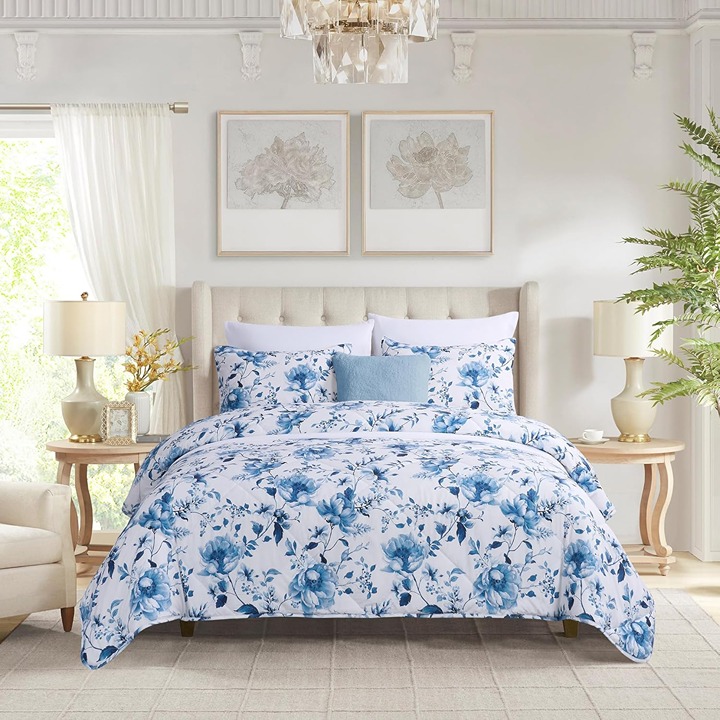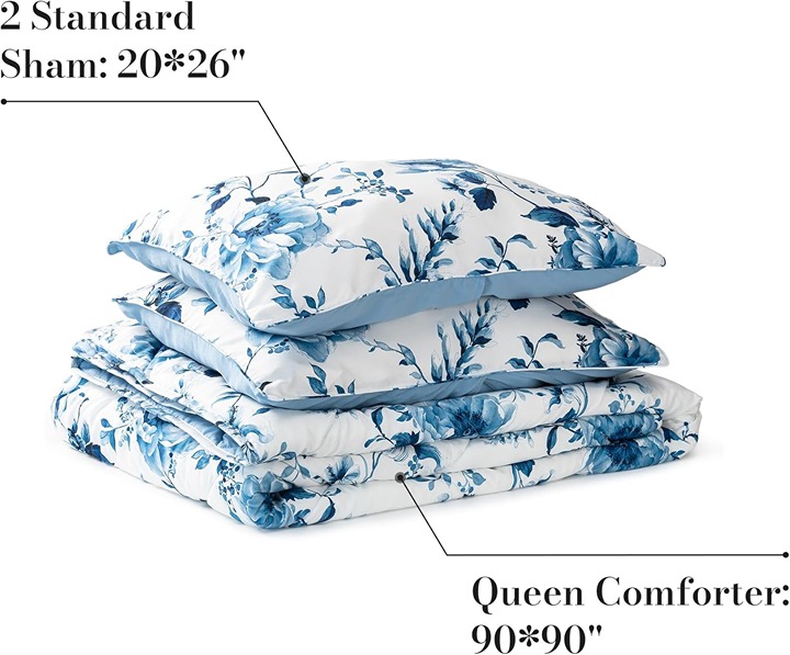 Discover the ultimate sleeping experience with our Queen Size Down Alternative Comforter Set, featuring a quaint blue and white garden floral pattern. This all-season comforter set includes a lightweight comforter and two pillow shams, filled with high-performance Bionic Alternative Down for superior warmth without the weight. It's hypoallergenic, making it perfect for sensitive skin, and boasts a breathability rate 9.7 times higher than traditional down, ensuring comfort year-round. Crafted from environmentally friendly materials, this set supports a sustainable lifestyle while being easy to maintain—just machine wash and air out for optimal fluffiness.
