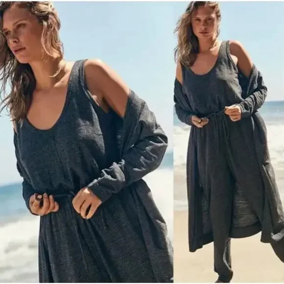 Free People FP Beach BiCoastal CardiganSize Small Color Charcoal Retail $128FROM A 2PC SETROMPER NOT INCLUDEDLISTING IS FOR 1 CARDIGAN ONLYNO ROMPER57% poly 23% rayon 20% cotton.Open front cardigan with side seam pockets.Free People invokes a spirit of femininity and creativity.Throughout their line of sweaters, tees, dresses and more, each piece incorporates a high level of quality and originality that reflects their adventurous it girl.With all that's constricting in the world today, Free People says your clothes don't have to be. Be yourself, be creative, be freeGently worn, no flaws.Retails $128