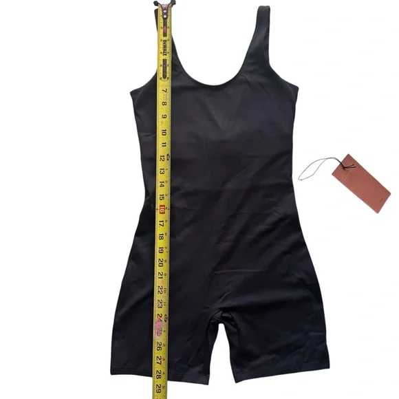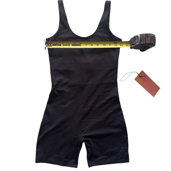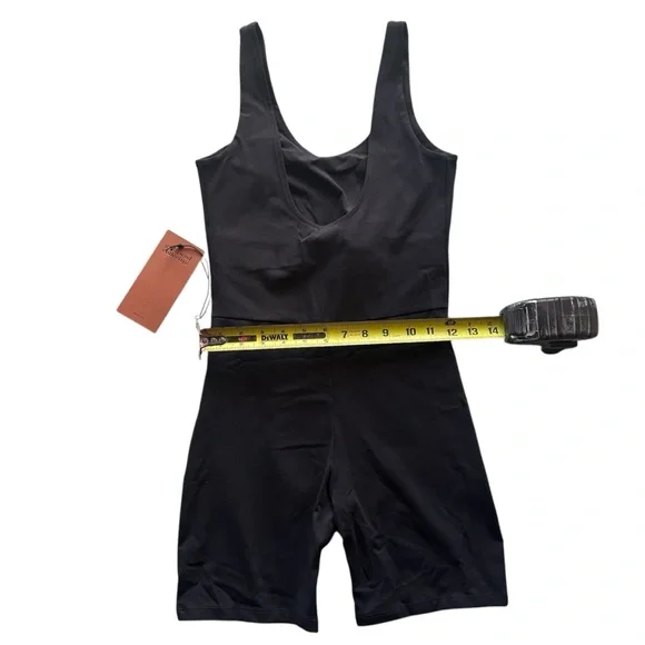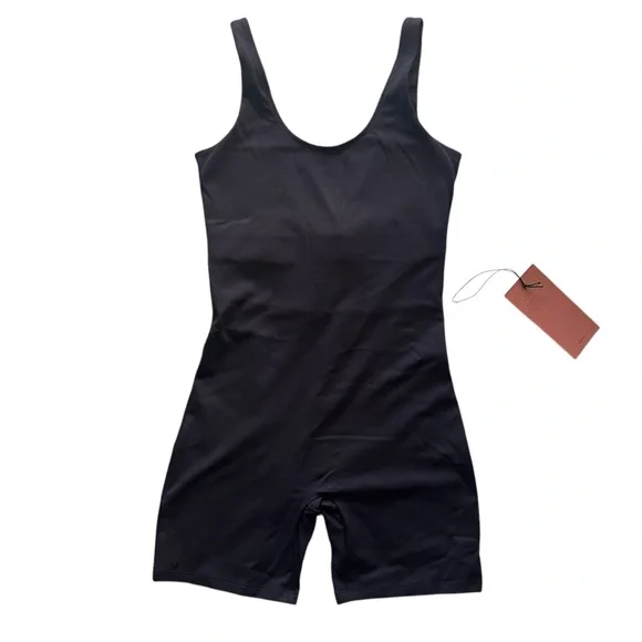 Chic black sleeveless bodysuit. Perfect for layering or wearing alone.Details & Care-A bike short-length compressive unitard with a scoop neck, low back, and built-in bra.•Made with COMPRESSIVE for smoothing, sculpting support•Compressive is made with 79% recycled water bottles (RPET) and 21% spandex•Designed for low to medium-impact workouts •Breathable scoop back•No waist or center front seams for a smooth finish•Built-in bra for support•Sweat-wicking and sheer-proof•Soft yet sturdy construction with four-way stretch•When you’re done with this item, resell it or recycle itTo care for this item, wash cold with like colors and dry flat. Please note colors may bleed at first, so always wash with like colors in cold water. We recommend using a microfiber filter or filtering wash bag.* Pictures are examples of how you can style , and how it might fit .