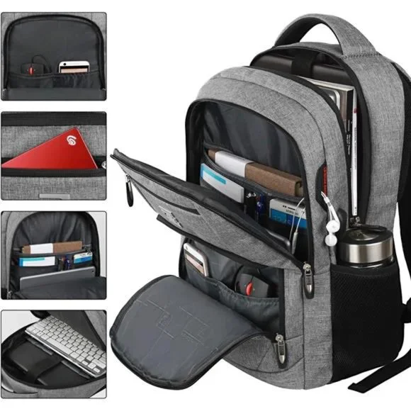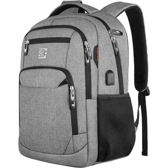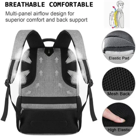 🧿Storage Space & Pockets:One separate laptop compartment hold 15.6 Inch Laptop as well as 15 Inch,14 Inch and 13 Inch Macbook/Laptop.One spacious packing compartment roomy for iPad,mouse,charger,binders,books,clothes,ect.Mesh pockets at side for water bottle and compact umbrellamake your items organized and easier to find.🧿COMFY&STURDY: Comfortable airflow back design with thick but soft multi-panel ventilated padding, gives you maximum back support. Breathable and adjustable shoulder straps relieve the stress of shoulder. Foam padded top handle for a long time carry on🧿FUNCTIONAL&SAFE: A luggage strap allows backpack fit on luggage/suitcase, slide over the luggage upright handle tube for easier carrying. With a hidden anti theft pocket on the back protect your valuable items from thieves. making your journey and travelling more convenient wherever you go.🧿USB PORT DESIGN: With built in USB charger outside and built in charging cable inside,this usb backpack offers you a more convenient way to charge your phone while walking. Headphone Jack: you can listen to your favorite music on the go hands-free.🧿DURABLE MATERIAL&SOLID: Made of Water Resistant and Durable Polyester Fabric with metal zippers.Ensure a secure & long-lasting usage everyday & weekend.Serve you well as professional office work bag,slim USB charging bagpack, perfects for business traveling, weekend getaways, shopping & outdoor activities in daily life. Good Gift for college.