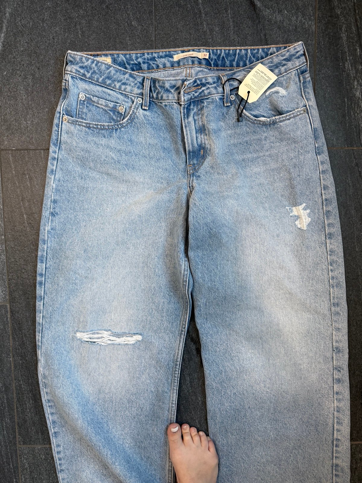 Bought two sizes, and forgot to return one! NWT never worn. Light wash jeans with some distressed detail. Retails at $108, so my loss is your gain! I wore the size 31 I bought for my maternity shoot. Photo for reference.