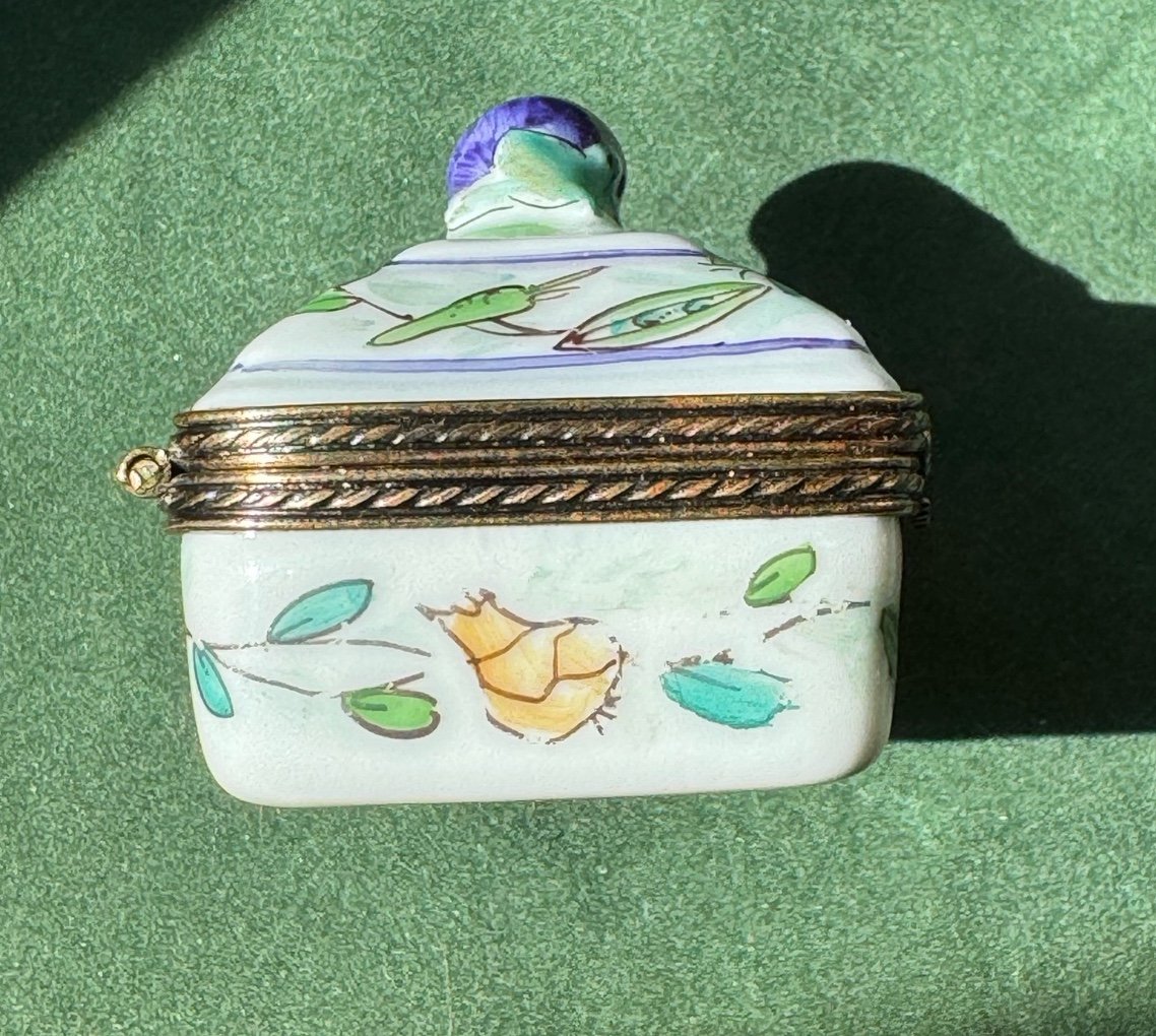 As shown. See all photos. Belonged to my late mother. Label on bottom reads Rue Royale, so that must be the retailer of origin. Possibly in NOLA. It also indicates the price when my mom purchased this was $168. I’d like to think the 97/244 is the unique edition number, but I can’t be sure. 244 is a bizarre figure for an edition run. I believe this is signed as well, underneath the sticker. Adorable miniature root vegetable themed serving dish.