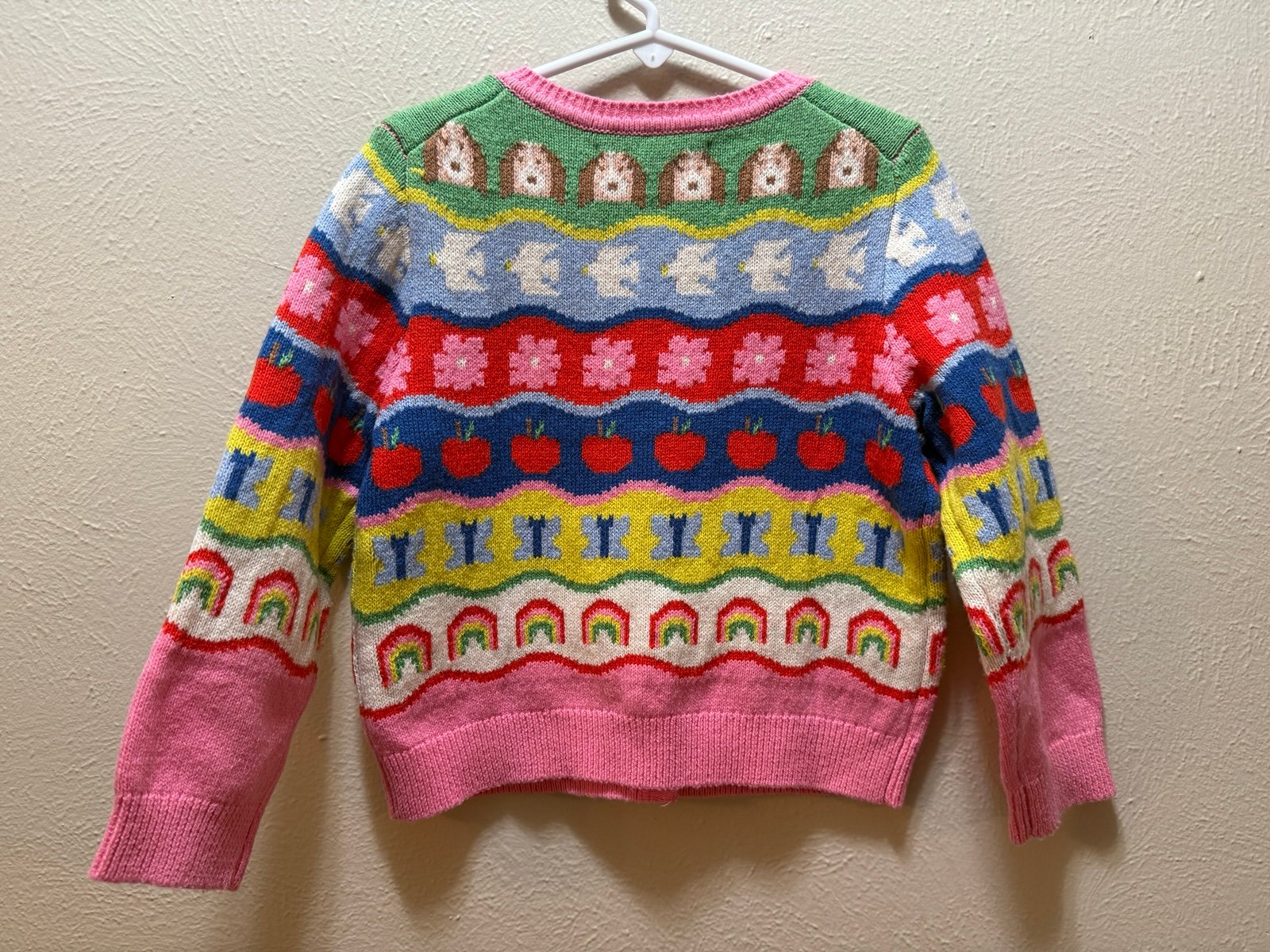 A wool-and-cotton blend offers exceptional comfort for your little darling in this charming cardigan featuring a fun take on classic Fair Isle.