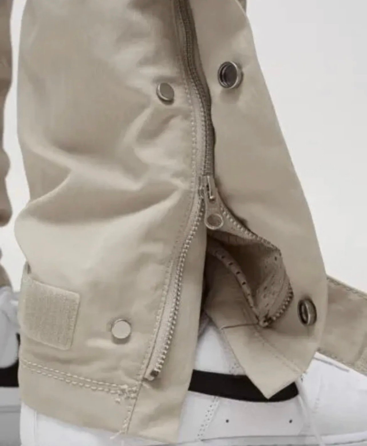 The Nike x Fear Of God NBA Nylon Warm Up Pants in size S feature a drawstring closure, adjustable waist, and pockets for comfort and functionality. Made from blended fabric with a nylon material, these beige pants are designed for winter, fall, and spring seasons. The track pants style with a tapered leg and Fear Of God theme make them a stylish choice for activewear occasions like walking, school, and basketball. Perfect for those looking for a cozy yet fashionable addition to their athletic wardrobe, these pants are a standout collaboration between Nike and Fear Of God.