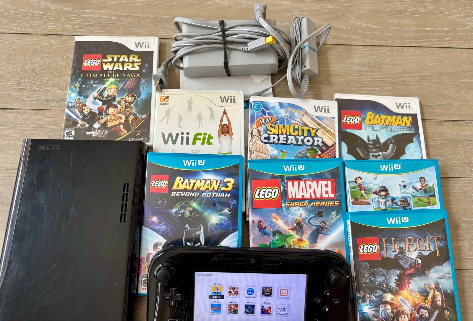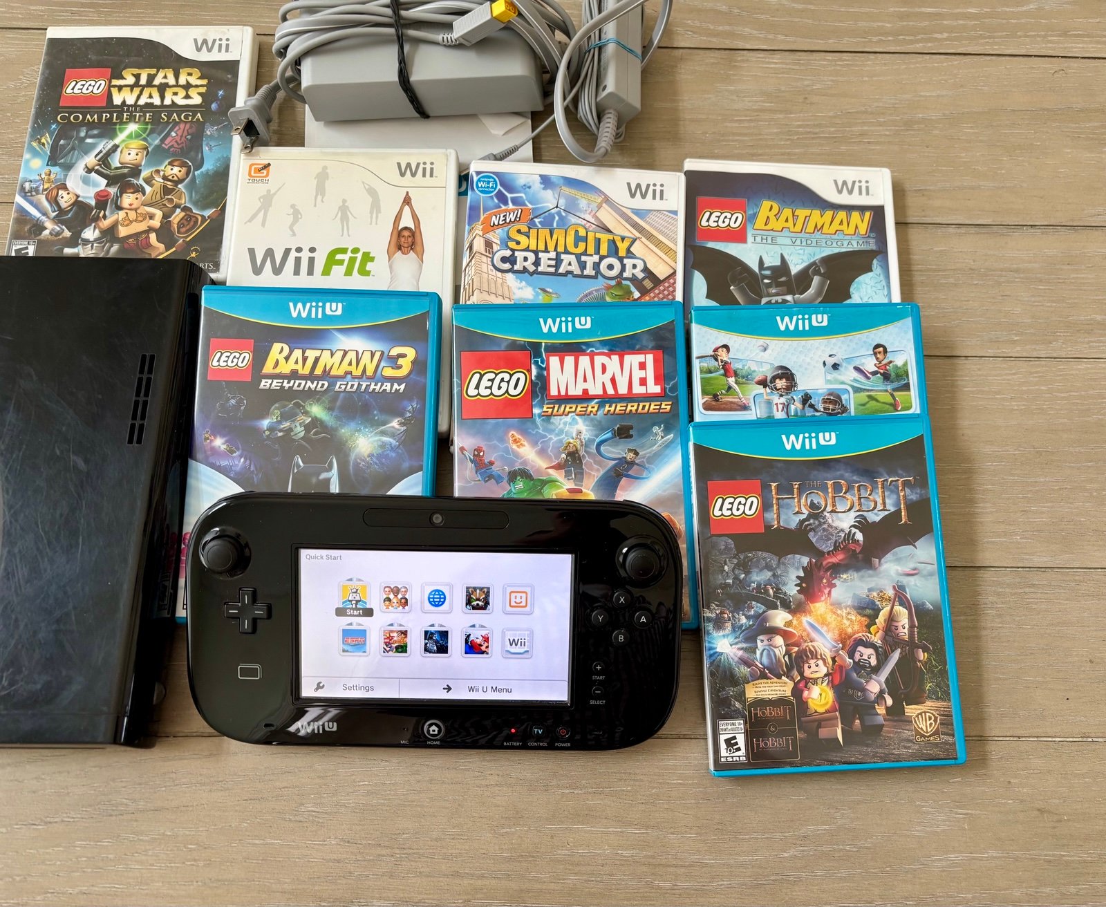 Nintendo Wii U Bundle Console + 10 Games . In good condition. Tested and working as seen. Nonissues with console or gamepad. Comes with all accessories shown. 8 of the games are physical games and the other 2 have been digitally downloaded as seen.