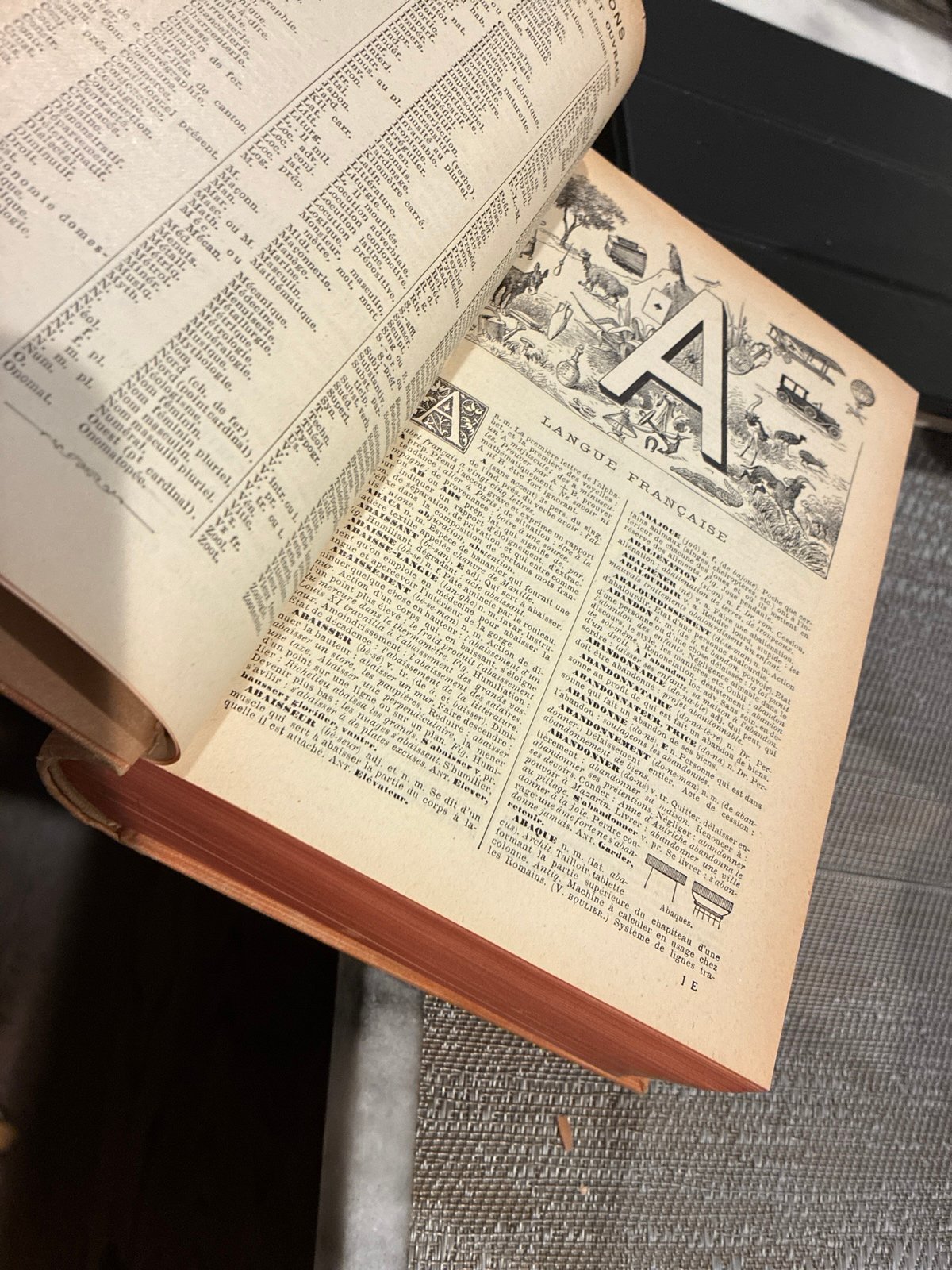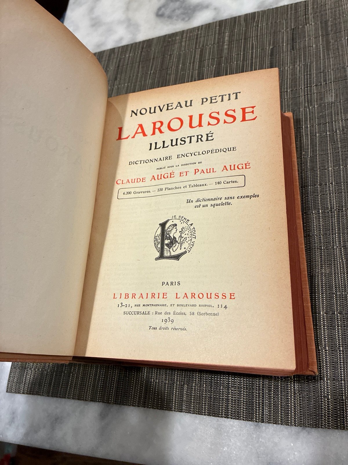 Must have for French purists, a 1939 authentic classic Larousse “Nouveau Petit Larousse Illustre” 1939 edition.