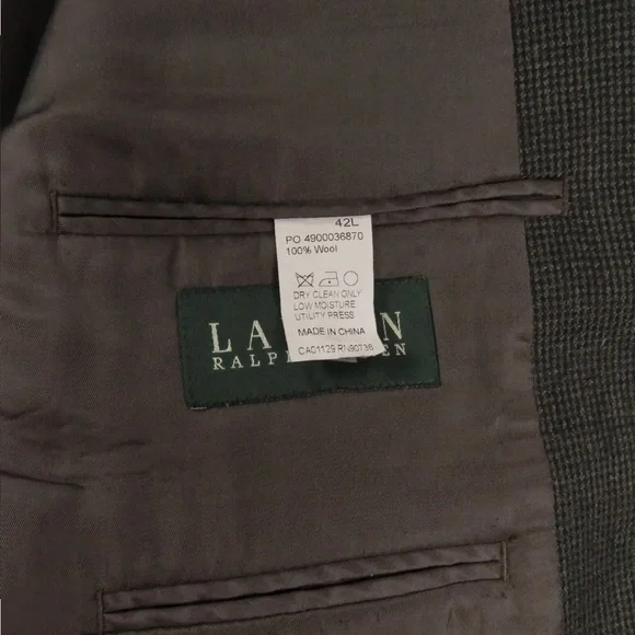 Description: NWOT Lauren Ralph Lauren 100% Wool Brown 2 Button Blazer Sport Coat Jacket -Two button closure -Two front flap pockets-Left chest pocket-Single vented back-Four button cuffs -Notch collarSize (Check Measurements): Mens 42 LColor: BrownFabric: 100% woolCondition: New Without TagsItem#: 66967Measurements are in inchesArmpit to armpit: 23"Back bottom of the collar to the hem: 31"Shoulder to shoulder: 18 3/4"Shoulder seam to end of cuff: 25 1/2"BUYING VINTAGE·We do our best to thoroughly inspect all items for any visible imperfections i.e., rips, repairs, holes, stains, etc. and note as such.·Please note vintage sizes are not always comparable to today's sizing. Please refer to the measurements 23in the description for a more accurate depiction of the true size. If an issue should arrive, please contact us prior to leaving a negative as we strive for providing excellent customer service.Please compare your measurements to the measurements provided in the listing description to ensure a proper fit. 64588