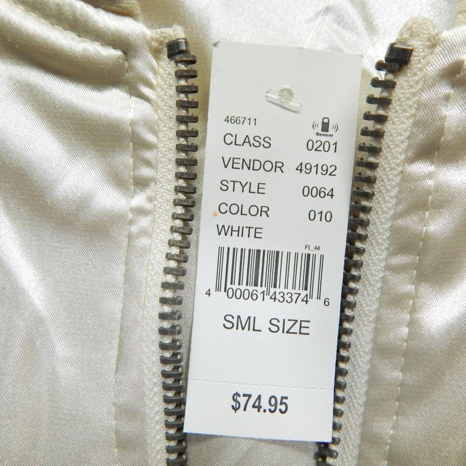 Stylish women's bomber jacket in a shiny satin cream fabric.