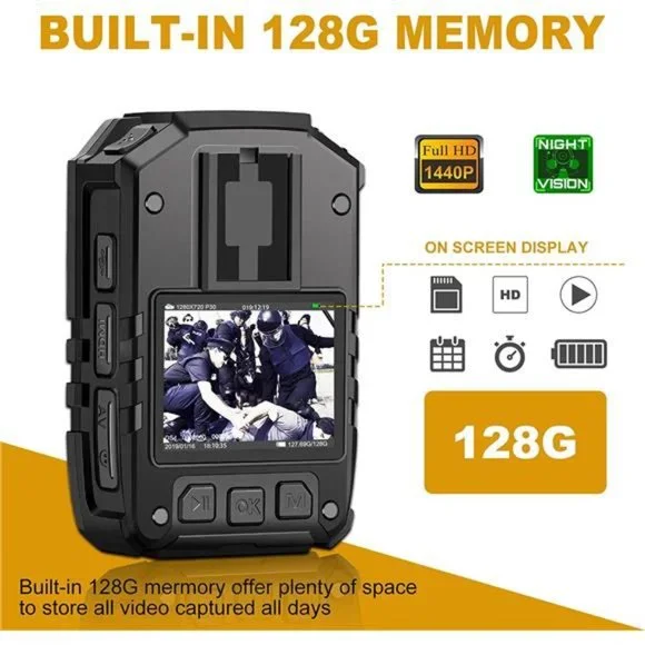 🧿128GB Large Memory: Built in 128G Large Memory, there will be plenty of space to store all video captured throughout your upcoming working days.🧿1440P UHD, IR NIGHT VISION : 1440P UHD recording, this body camera equipped with high-intensity infrared LEDs, also capture clear footage up to 50 feet away in pitch-black darkness🧿Ambarella H22 Chipset & Long Battery Life: CammPro I826 Pro adopts Latest Ambarella H22 high-performance chipset. A powerful 3500mAh battery lets you record footage for up to 14hours in a row, 2 Inch LCD monitor allows you to instantly watch back previous recordings🧿Safety: the camera has password protection to prevent unauthorized changes on menu. This 2K body worn camera offers great security throughout your upcoming shifts as a security guard, police officer,or bouncer.Password or password-free setting to suit different requirements🧿Built for work environments: Camera is extremely rugged and durable, capable of withstanding the harshest weather and working conditions🧿Wireless communication technology: Wi-Fi🧿Mounting type: Wall Mount