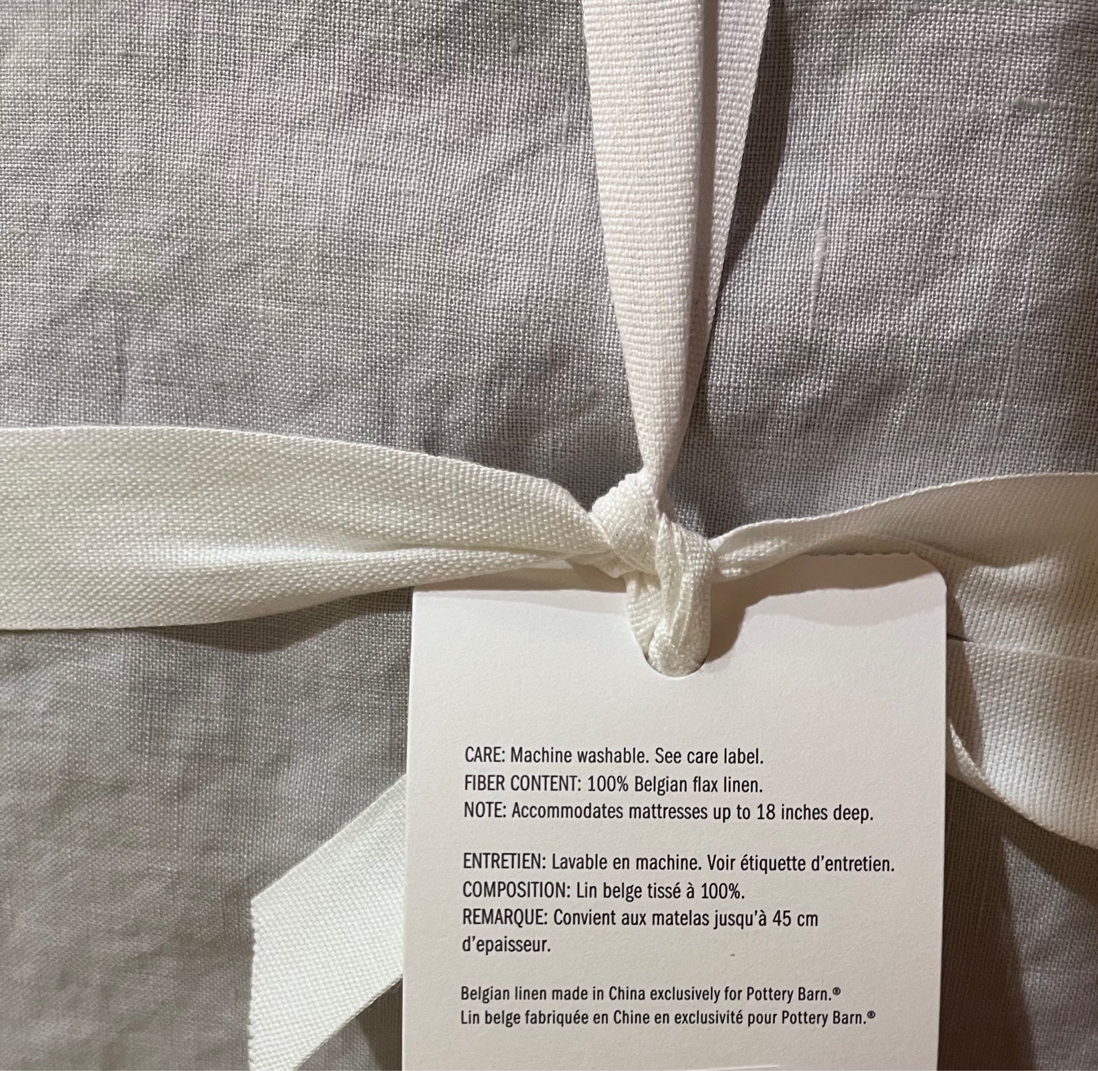 Pottery Barn King Belgian Linen Fitted Sheet in Soft Grey , New with Tags, Retail $134