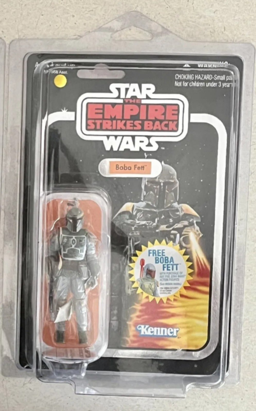 Star Wars the Vintage Collection Boba Fett VC09 FOIL chase edition. Very nice condition. Small crease on the upper left side by the hang tab. Hardly noticable. Minor shelf wear. Comes with Star Case.