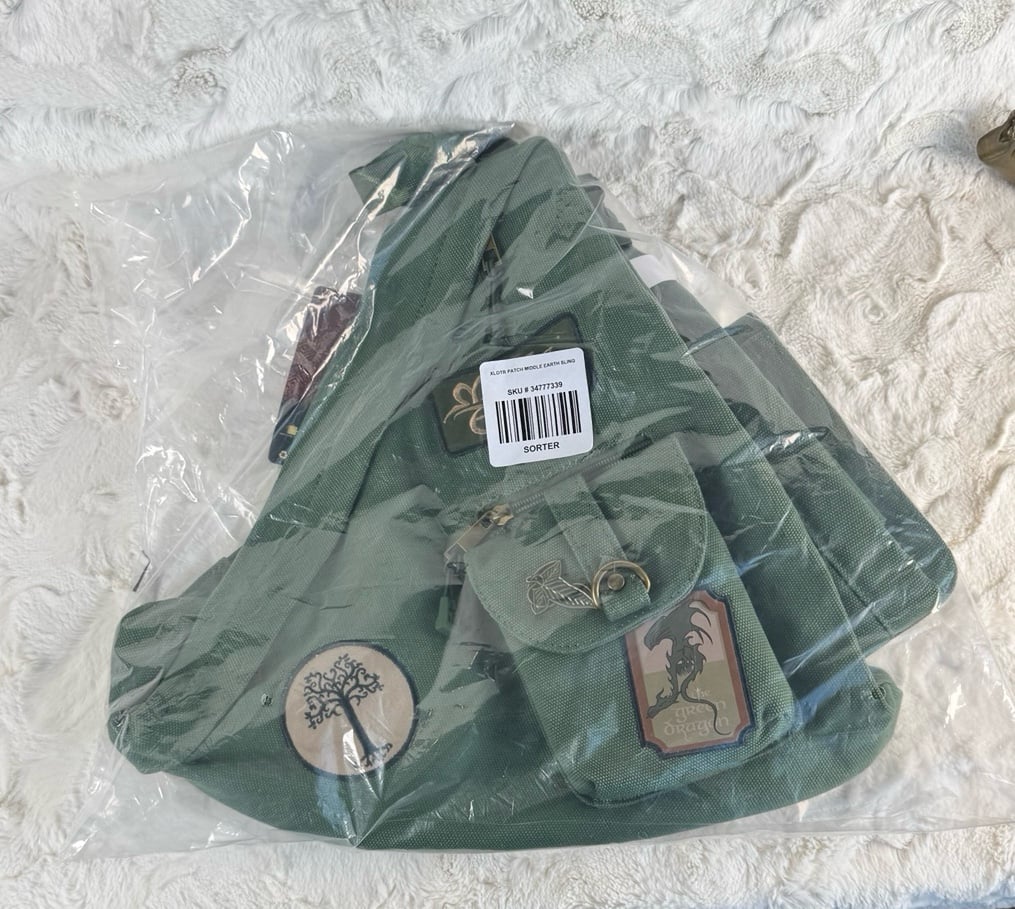 “Pack up for a trip to Mordor with this Lord of the Rings crossbody bag! Featuring embroidered patches of icons from the franchise, the front includes a buckle pocket with a metal Leaf of Lorien badge. With a removable pouch on the strap and more designs on the back, this bag is perfect for your Middle-earth adventures. Don't forget the matching cardholder sold separately!