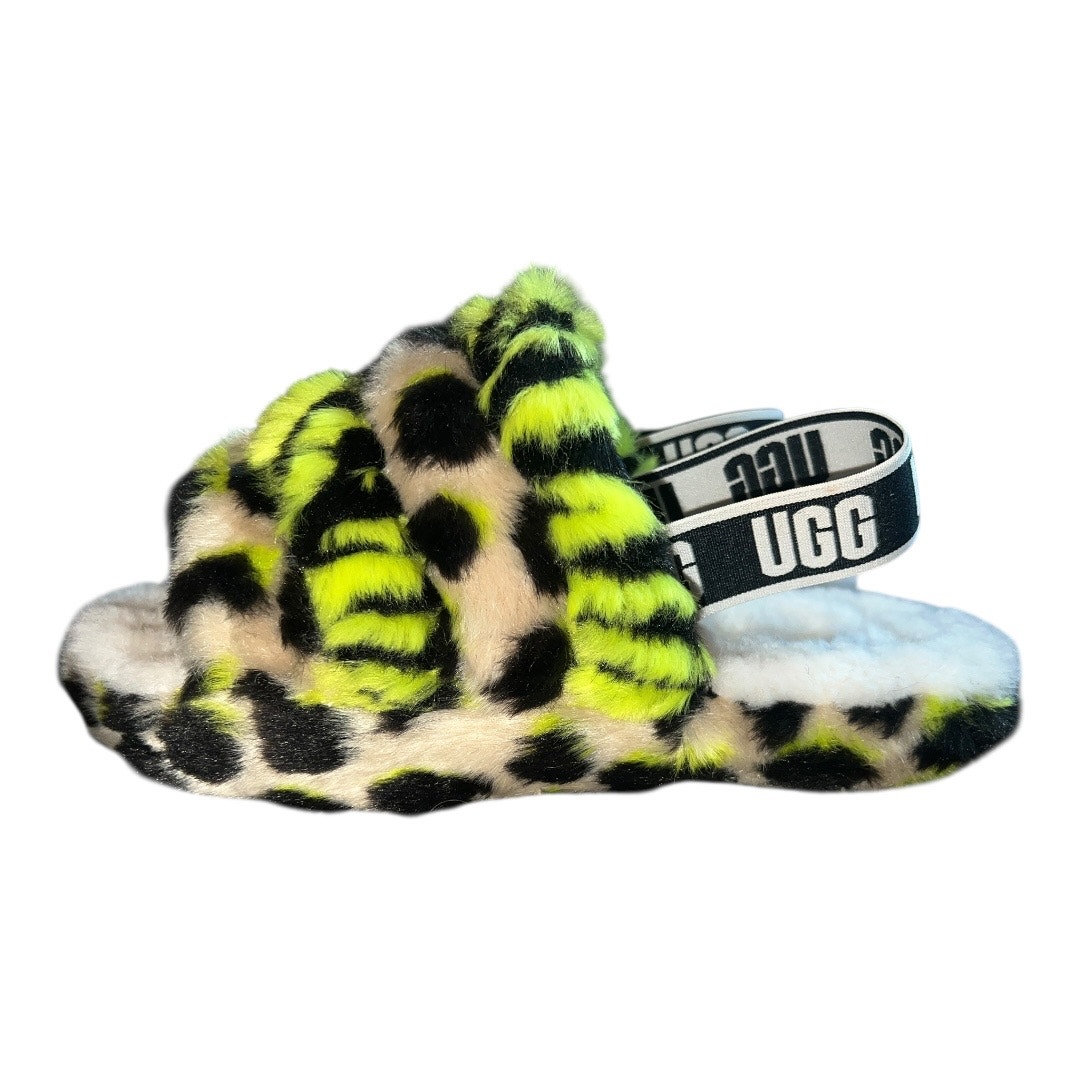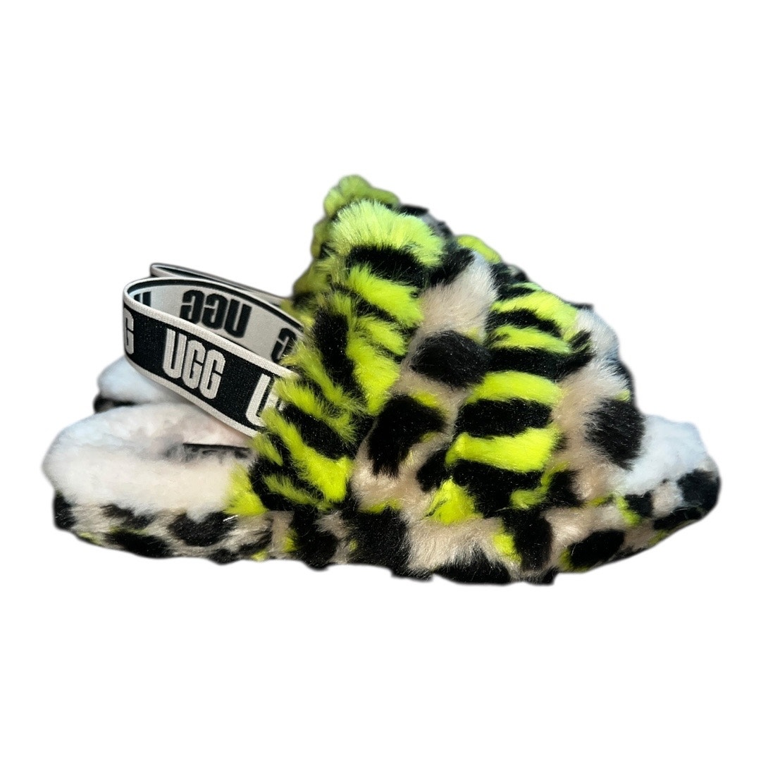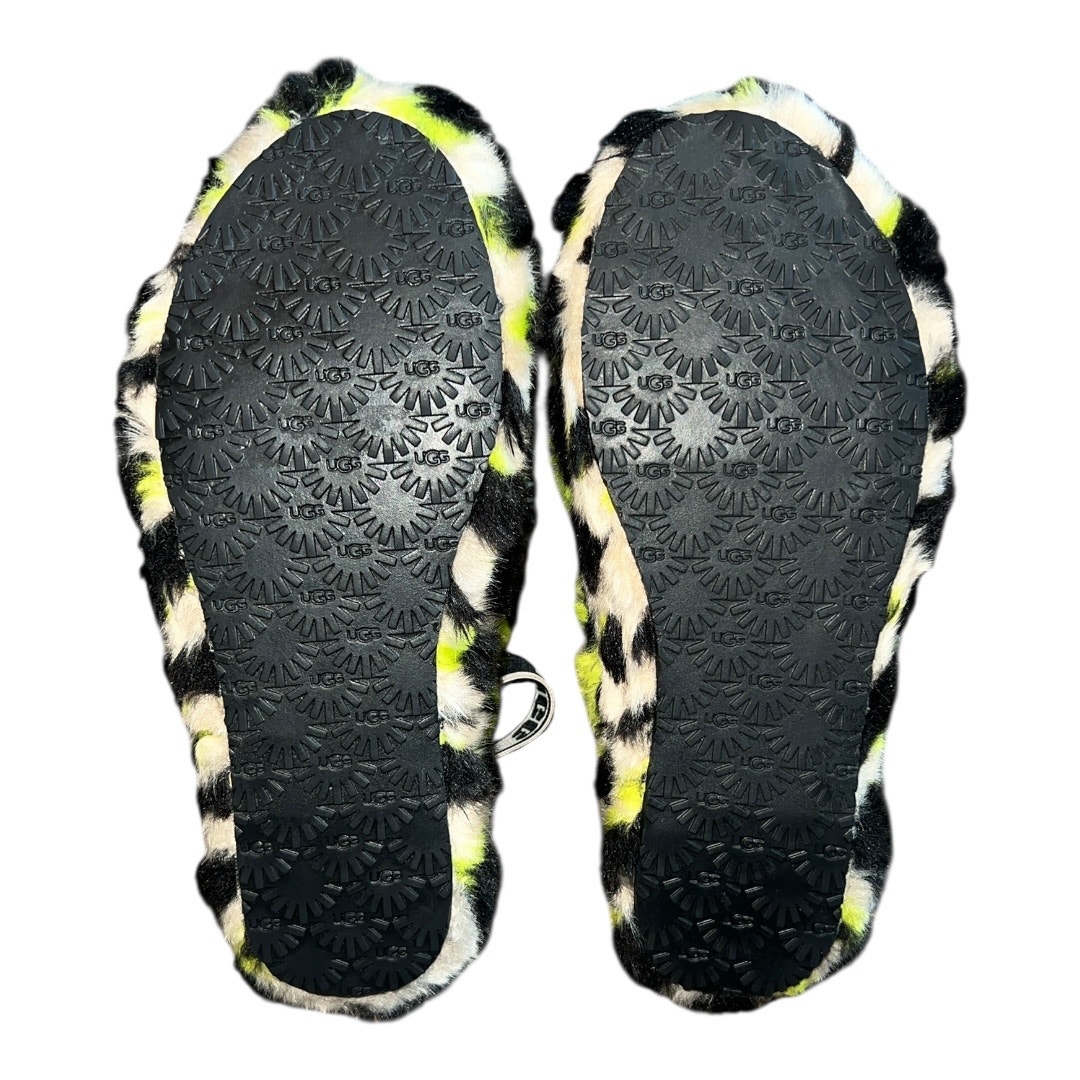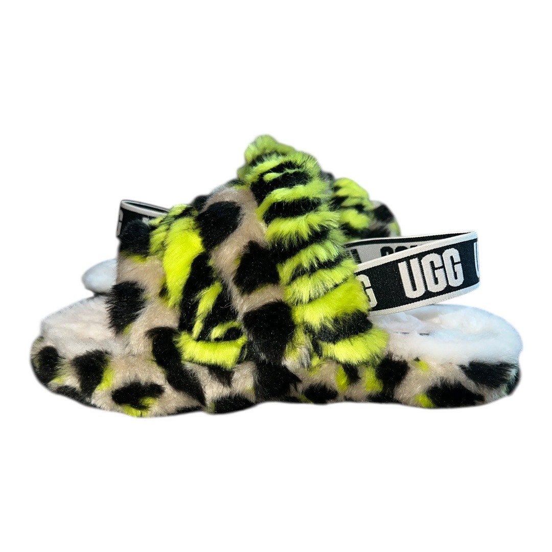 Super cozy and fun UGG Fluff Yeah Animilia slides in excellent condition. Worn only once or twice (if ever) the faux shearling is still soft, plush, and vibrant with no matting. The Animilia print features a stylish mix of tan, cream, and brown tones in a subtle leopard-inspired pattern that adds a trendy touch to any casual outfit.