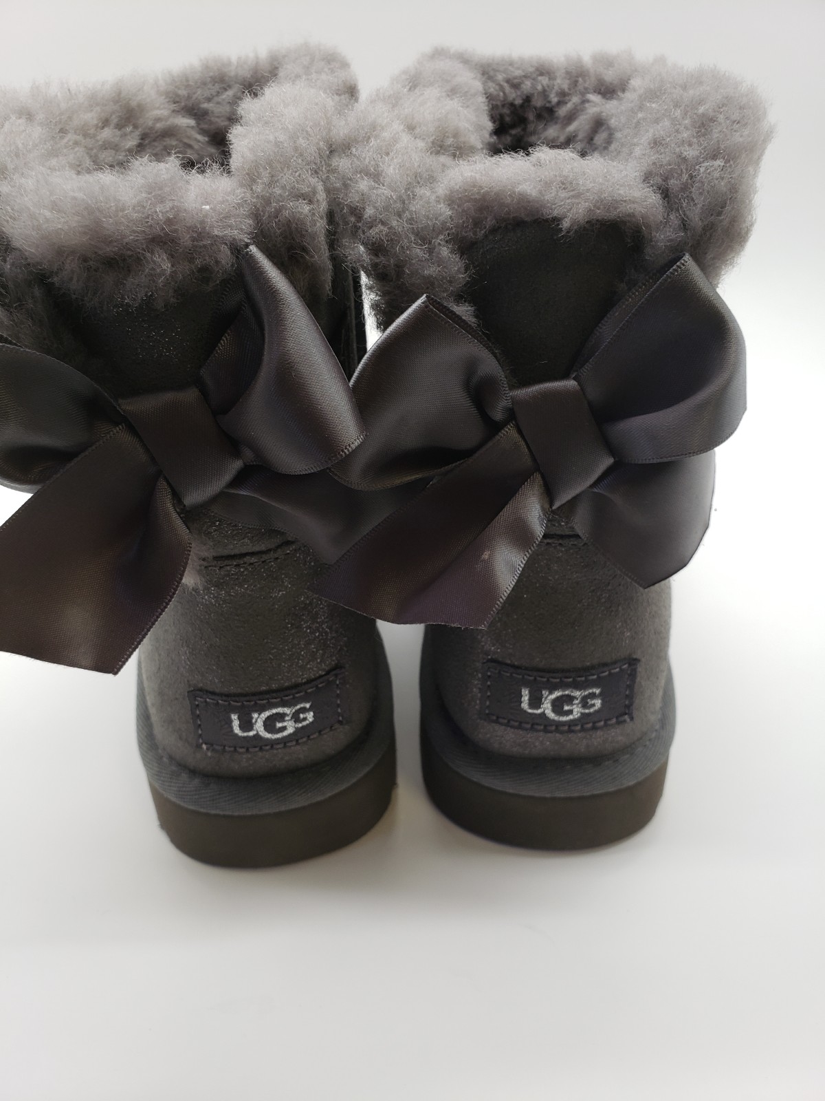 Ugg women's mini bailey bow ll shimmer size 6 charcoal color .