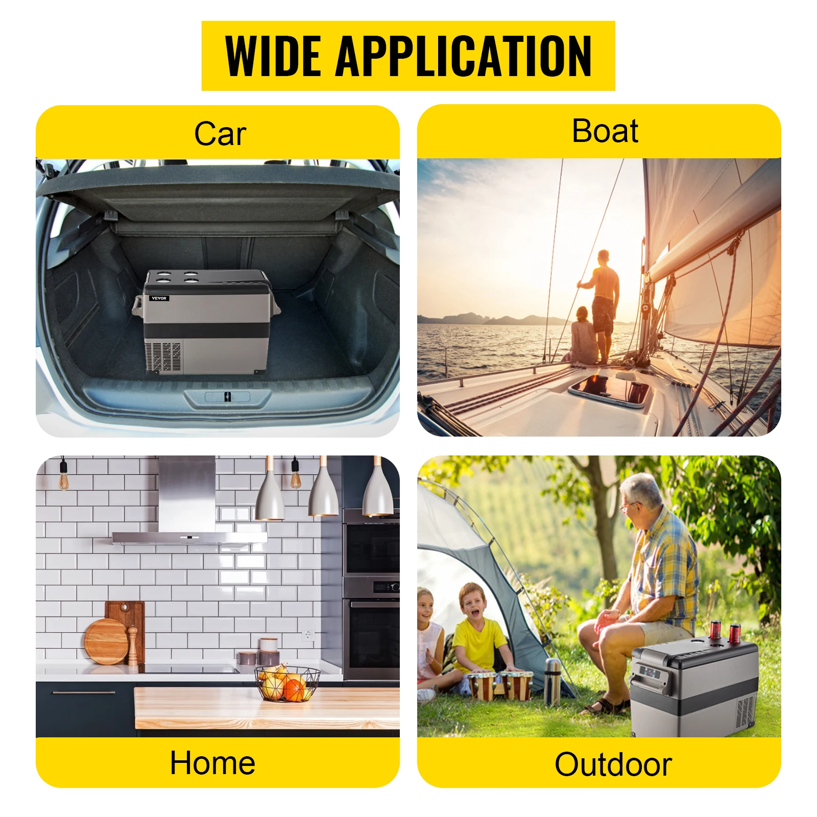 Extensive Usage: This 47.5Qt fridge freezer will fit snugly in your trunk, behind a car seat, or in the bed of a truck. You can take a 12v compressor fridge to any outdoor activity without worrying about bumpy roads or inclines. The car's travel fridge is perfect for RVs, campsites, boats, camping, fishing, road trips, and outdoor activities.