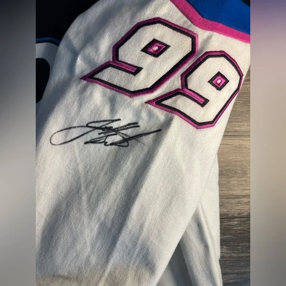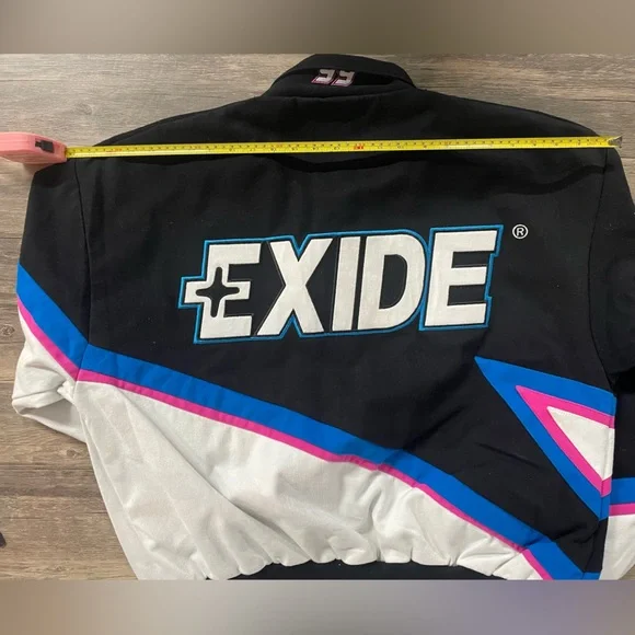 Show your love for Jeff Burton and Roush Racing with this vintage autographed NASCAR 2000 Exide Adult XL Pit Jacket. The jacket features a black, white, blue, and pink color scheme, and is officially licensed by NASCAR. It is made of high-quality materials and is perfect for any fan of auto racing.This unisex adult jacket is the perfect addition to any racing fan's collection. It is sized XL and features the Roush Racing team logo, as well as Jeff Burton's name and car number (#99). Whether you're at the track or just showing off your love for NASCAR, this jacket is a must-have.Features Jeff Burton’s autograph on the left sleeve.This jacket has never been worn. It was displayed in a shadow box for the last 24 years.