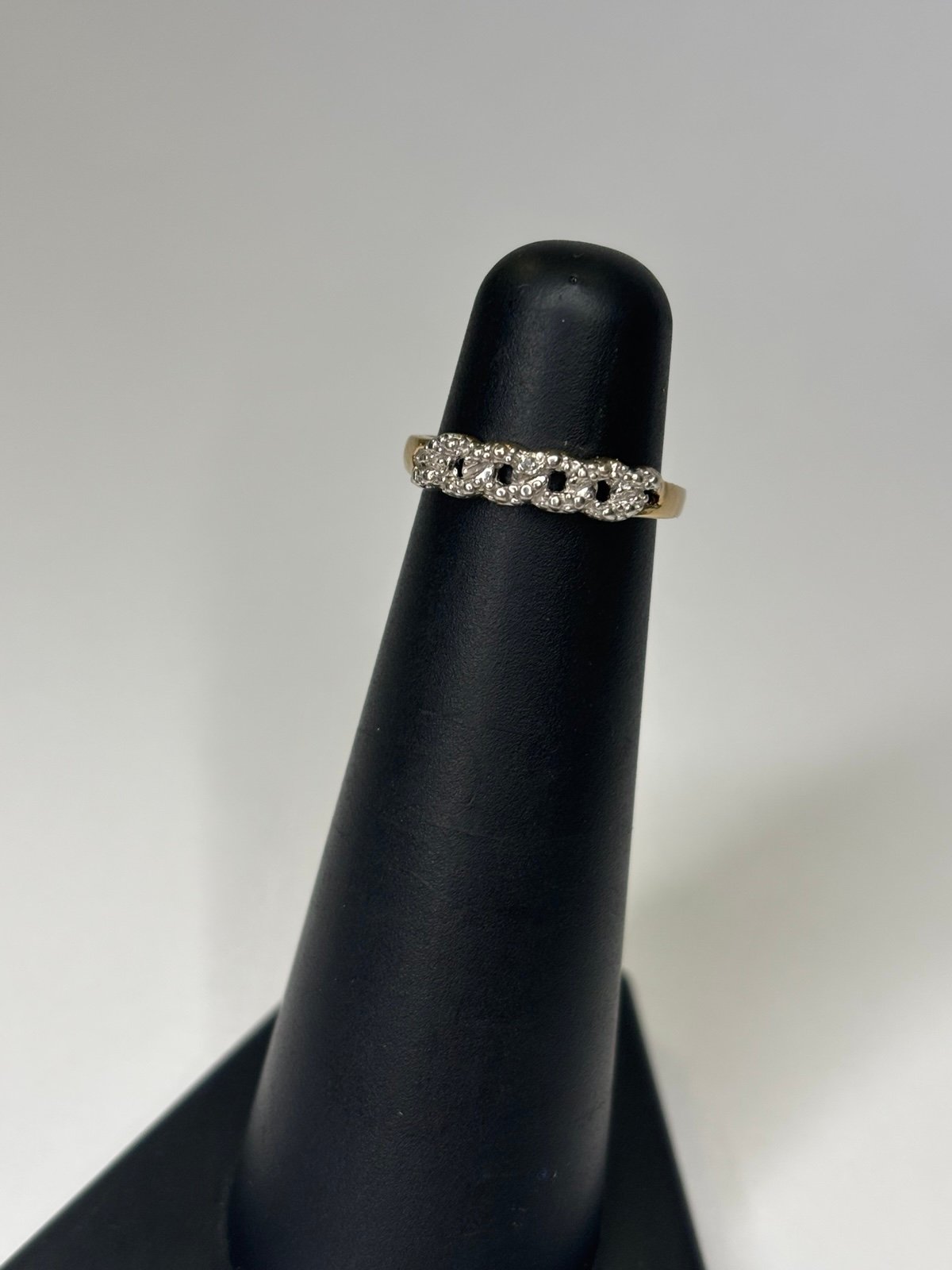 Vintage Caspian International 10K Yellow & White Gold Diamond Accent Toe Ring. This toe ring is tested and stamped 10k; it is also stamped "CI" (hallmark for Caspain International). Toe ring features one round cut diamond measuring 1mm(0.01 carat). This pre-owned toe ring is in good condition and is ready to be worn! Toe ring is exactly as shown in photos.