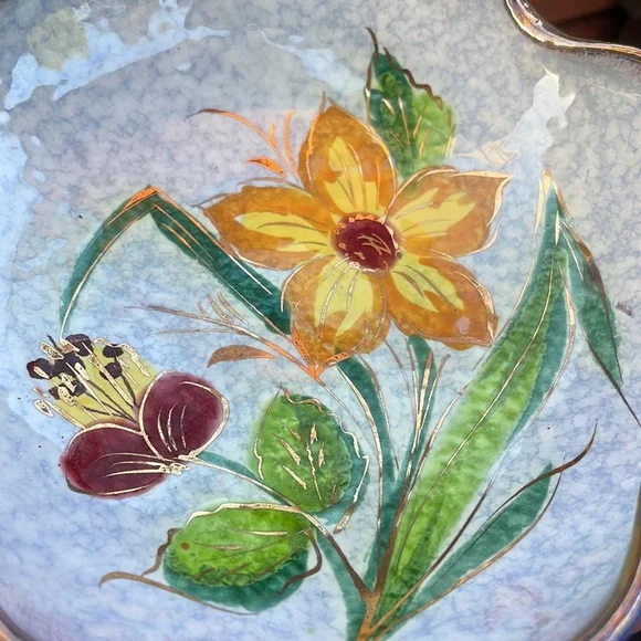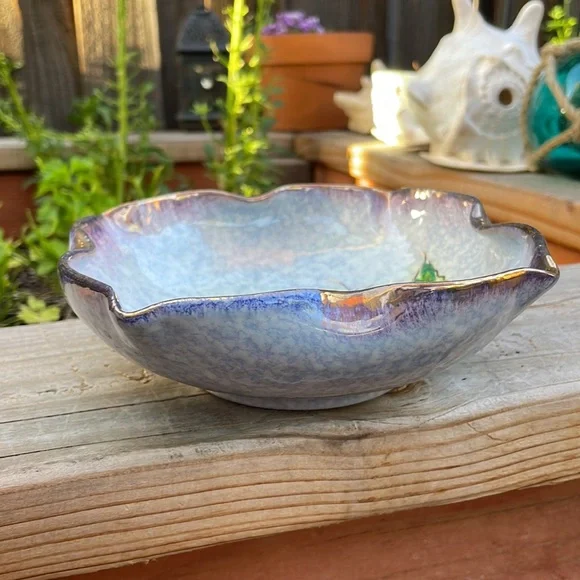 RARE find from the 1960’sVintage Italian Hand Painted Floral Ceramic Bowl w Gold Accents, Made in Italy. The bowl is ever so pretty with a nice blue with blended white in it. Curved rim that has gold accents on it. In the center of the bowl are nice hand painted flowers that are accented with gold. The outside of the bowl is the same color as the inside but there is no design. The bowl is in really nice shape with no damage noted. Fully marked on the reverse, Made in Italy. It also has the initials of the artist who painted it. Measures about 2.5" tall by about 7.5" across the top.Perfect for your home decor and works well as a candy dish or entryway decorative piece.Make an offer