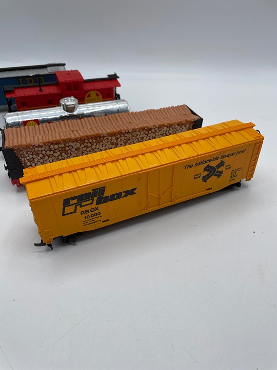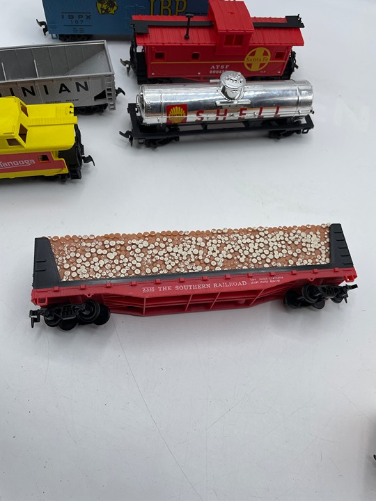 What you see is what you get. Lot of 8. Light wear throughout. Not all boxes match the train cars. The Maxwell House billboard is missing pieces. Sold as is. Please look at all photos and reach out to us if you have any questions. Thank you.