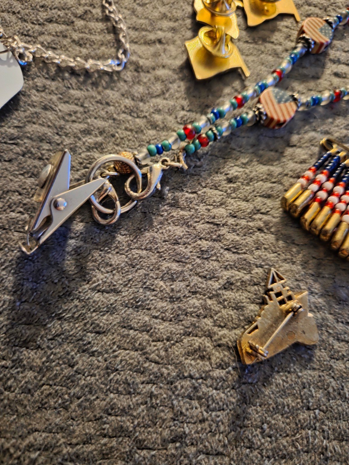1 item I believe is supposed to light up or make music, can see glue where it may have been repaired, not sure if it works, all other items appear to be in great condition, pins have backs