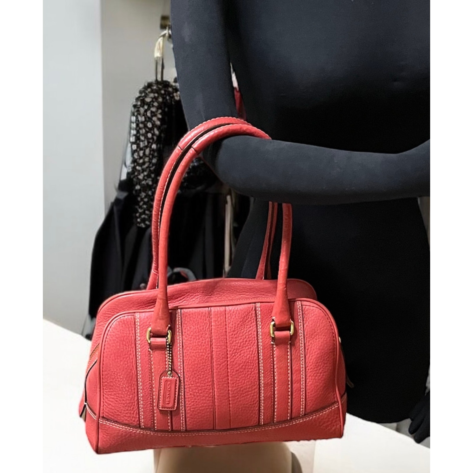 This Y2K Coach 10526 Hamilton Pebble Leather Satchel Bag from 2006 is such a great color! Featuring pebble leather in Coral with brass hardware, this bag is just as stylish today as it was almost twenty years ago and the perfect size for all of your essentials. Adding a scarf or bag charm would look adorable on this style. If you are looking for a retro, Y2K bag with a pop of color, this bag would be perfect!