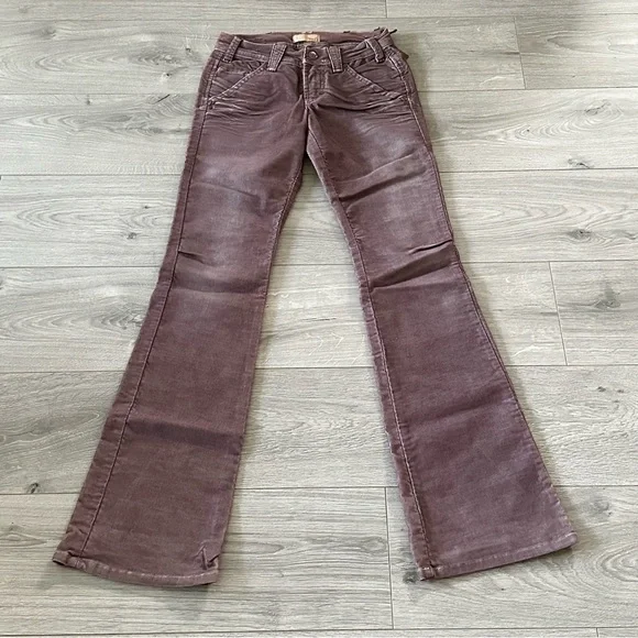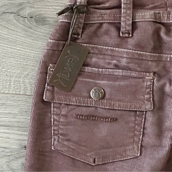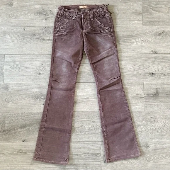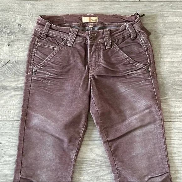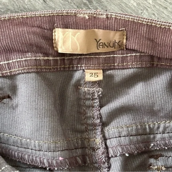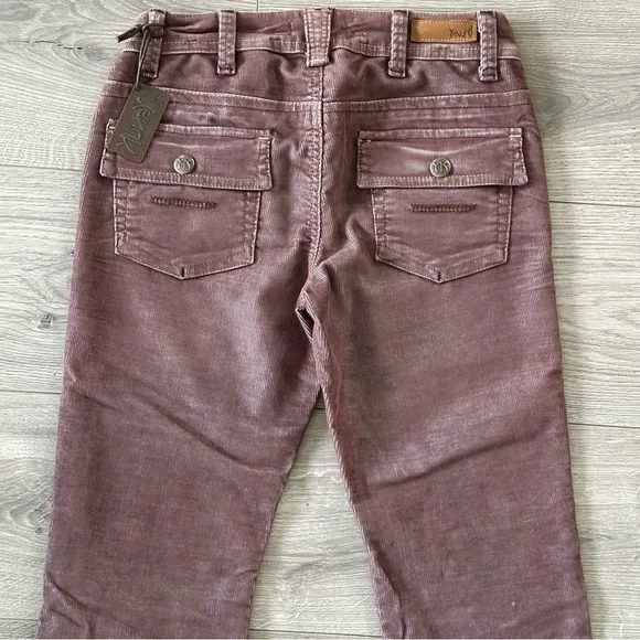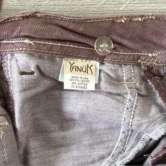 Yanuk Women's Faded Light Brown Purple Bootcut Jeans Pants Size 25 x 34 NWT $198These Yanuk bootcut corduroy jeans have just improved over time and will bring a classic old school vibe to your wardrobe. They feature a unique and rare faded brownish purple wash, a tan leather Yanuk patch on the rear waistband, Yanuk's signature embroidery on the back pockets, a five-pocket design and a zip fly with a bronze colored outside snap button and clear colored interior anchor button closure. They are both super fun and comfortable.100% AuthenticMade in the U.S.A.Size: 25, fits true to sizeCondition: New with tags Material: 59% polyester, 39% cotton; 2% spandexApproximate Measurements (laying flat):Inseam: 34"Rise: 7.5"Leg opening: 9"